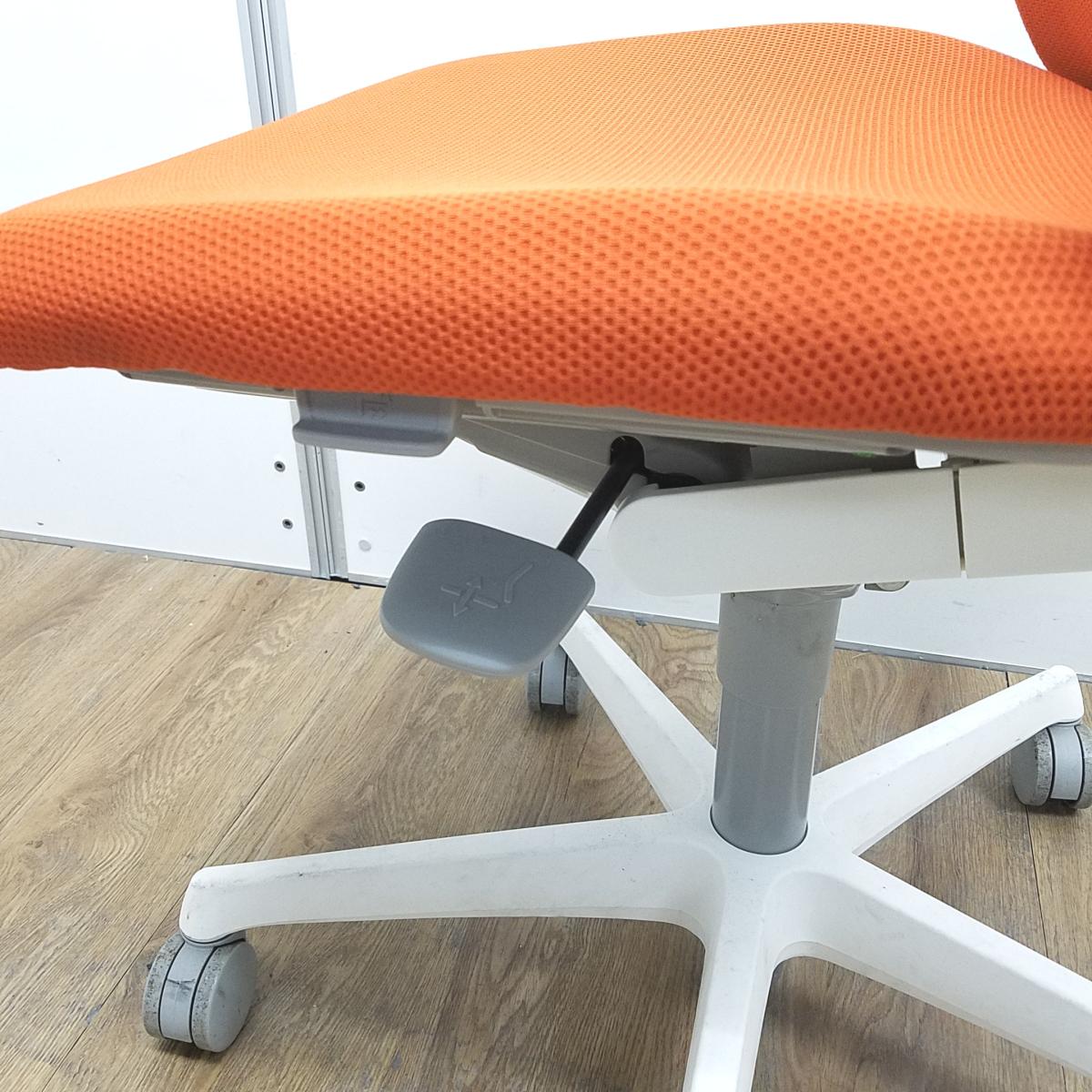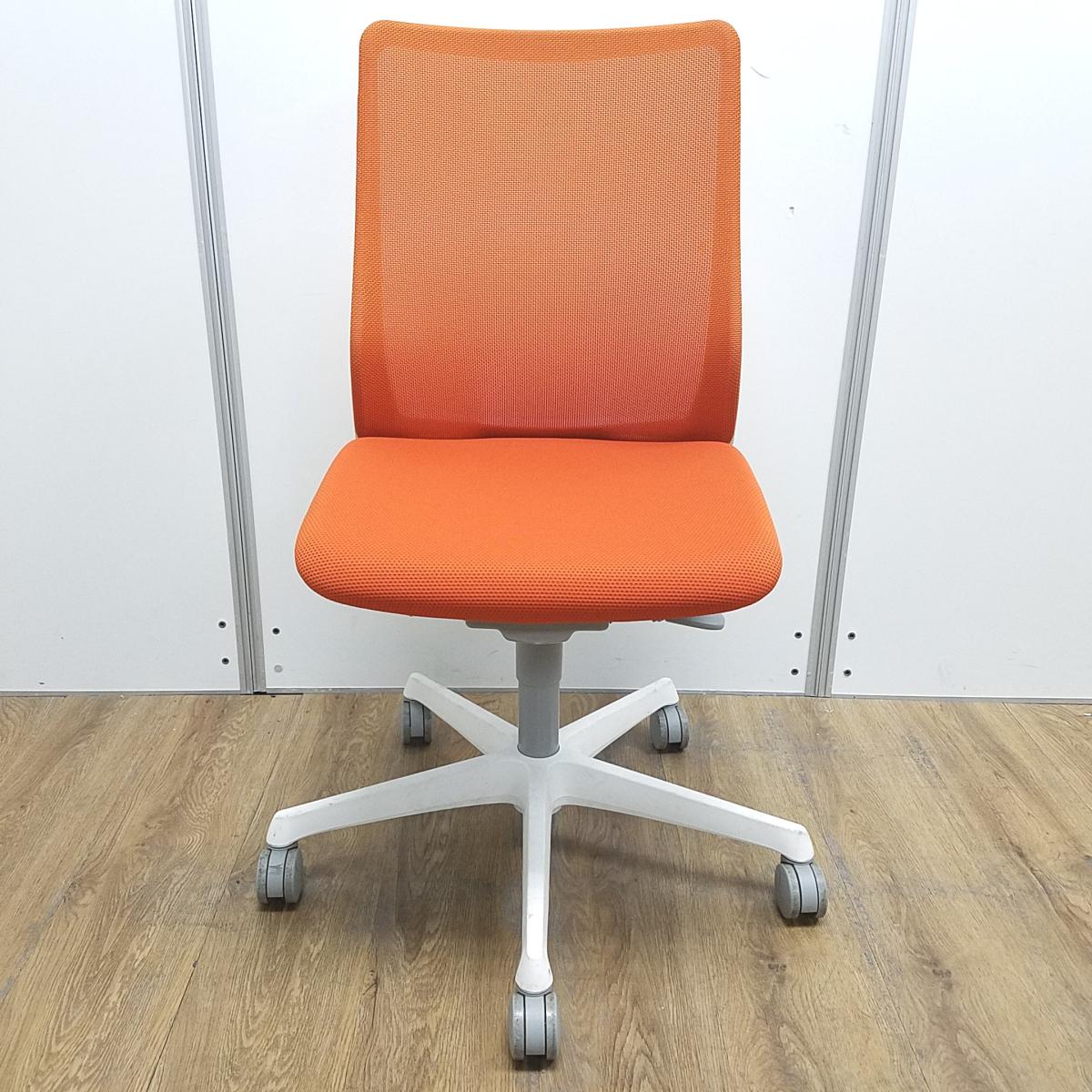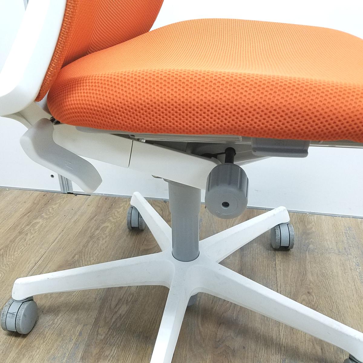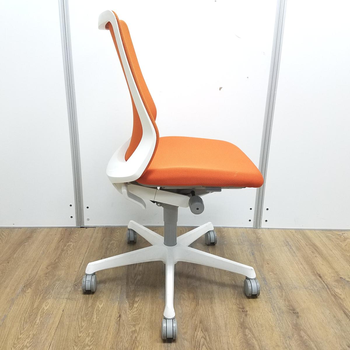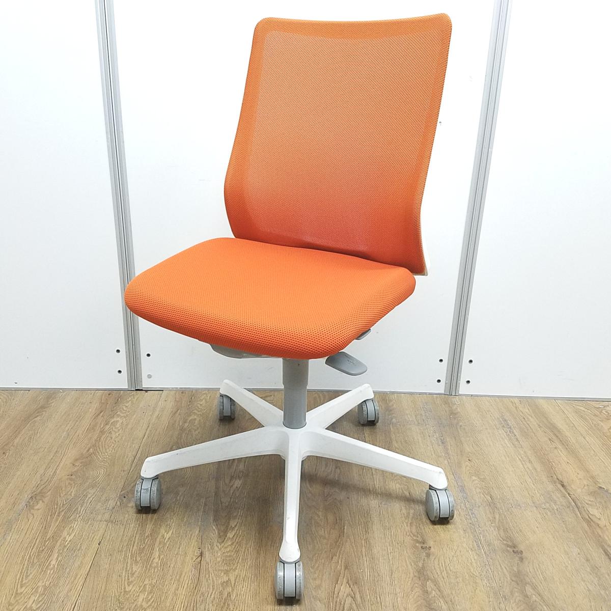 オカムラ製 フルーエント(Fluent) オレンジレッド ホワイトフレーム 肘無し ローバック 背面メッシュ 背中を立体的に包み込む! シルフィの座り心地を低コストで再現! 肘無しローバックチェア!!サーキュラーバリューCO2削減量の算出について