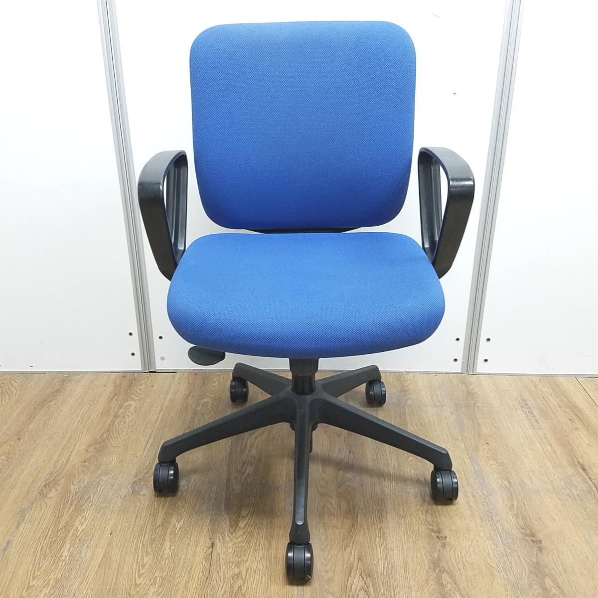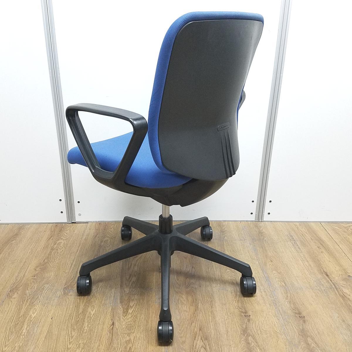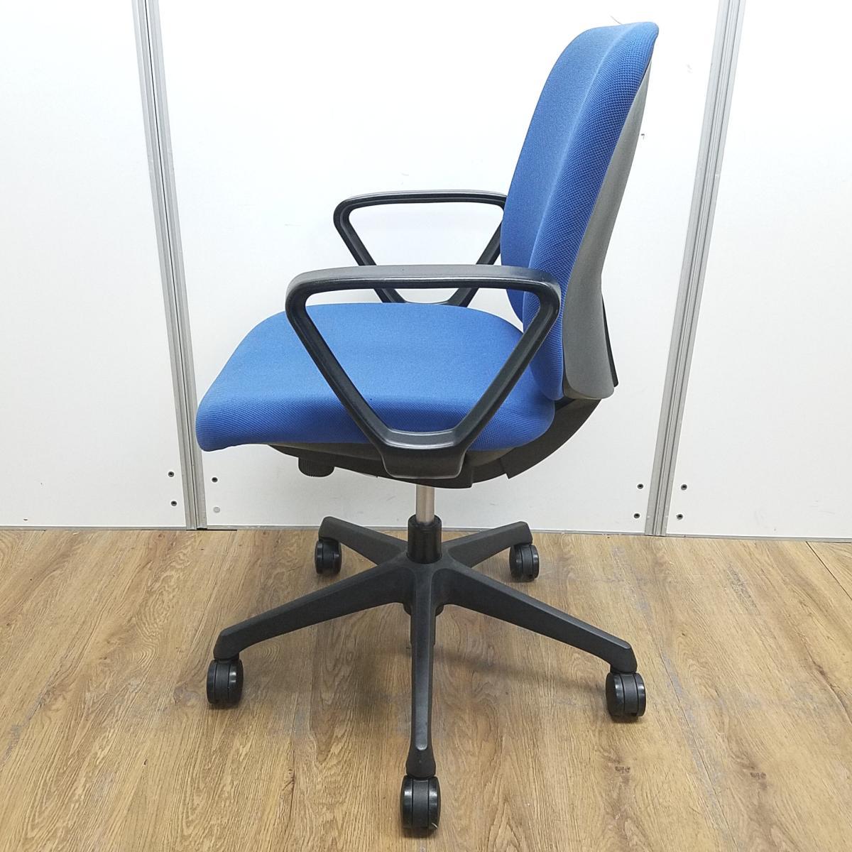 【T11】【K11】【商品入替のため、残り4脚限り】オカムラ製 CG-R ブルー ブラックフレーム 肘付き ローバック サークル肘※固定肘 ふっくらクッションが心地よい! コスパの良いワーキングチェア! 肘付きローバックチェア!!サーキュラーバリューCO2削減量の算出について