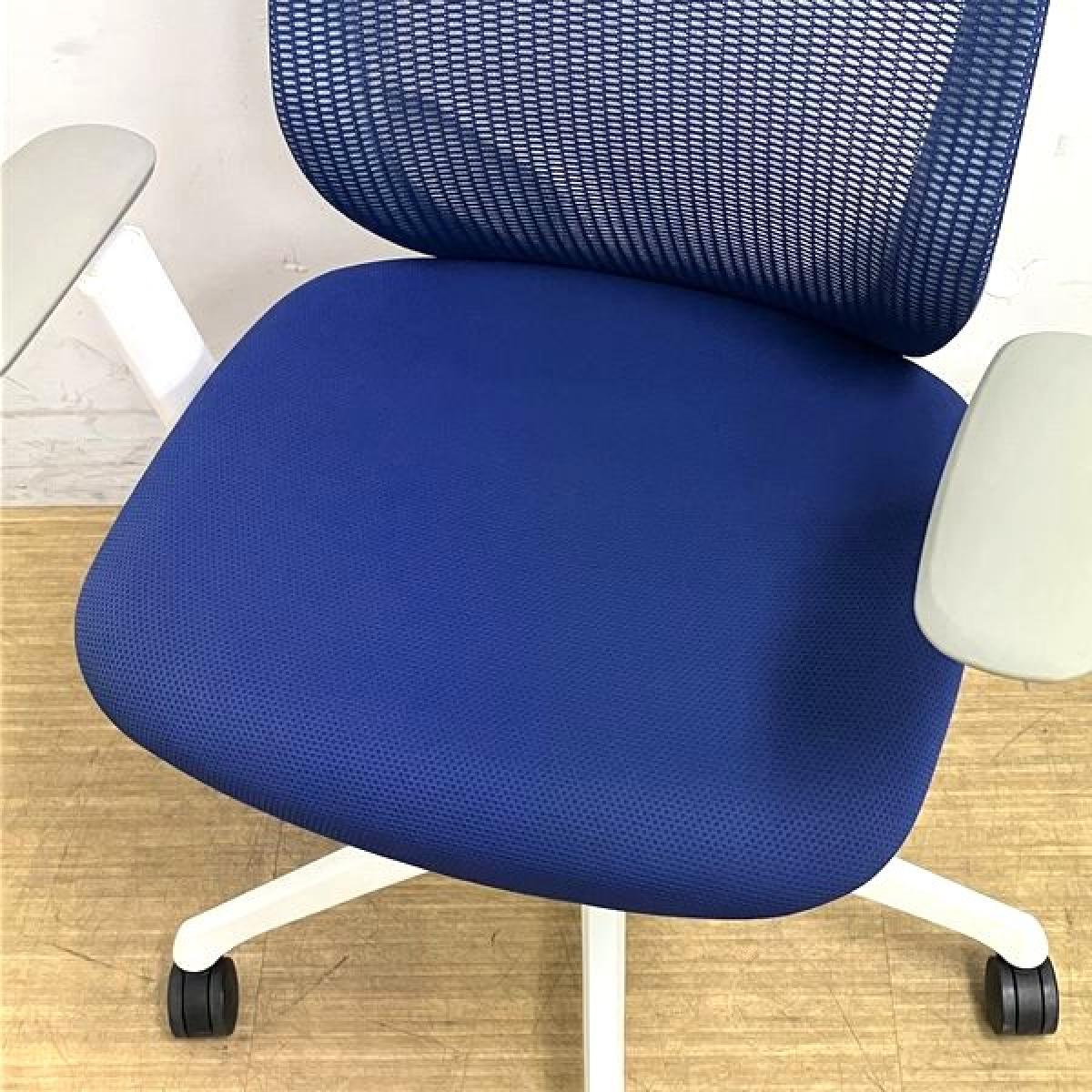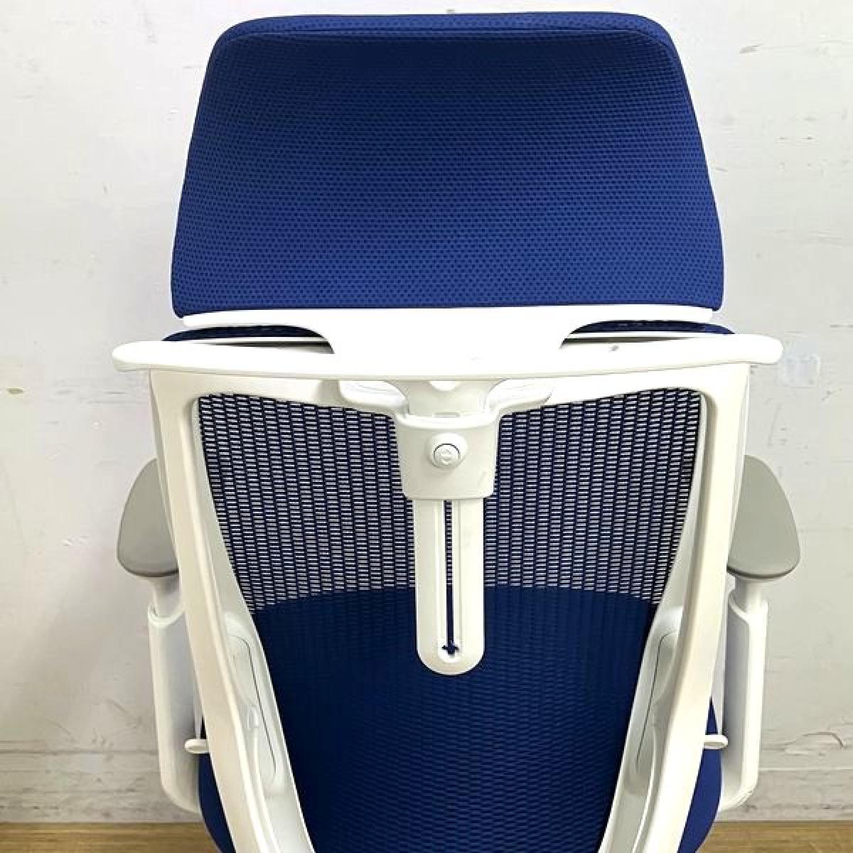 【ヘッドレスト新品】【2018年製】オカムラ シルフィー エクストラハイバック(固定ヘッドレスト付き) 背メッシュ アジャストアーム(可動肘) ミディアムブルー×ホワイトフレーム 在宅ワーク・テレワーク用におすすめ 前傾機能搭載【AD】- 足立・葛飾店