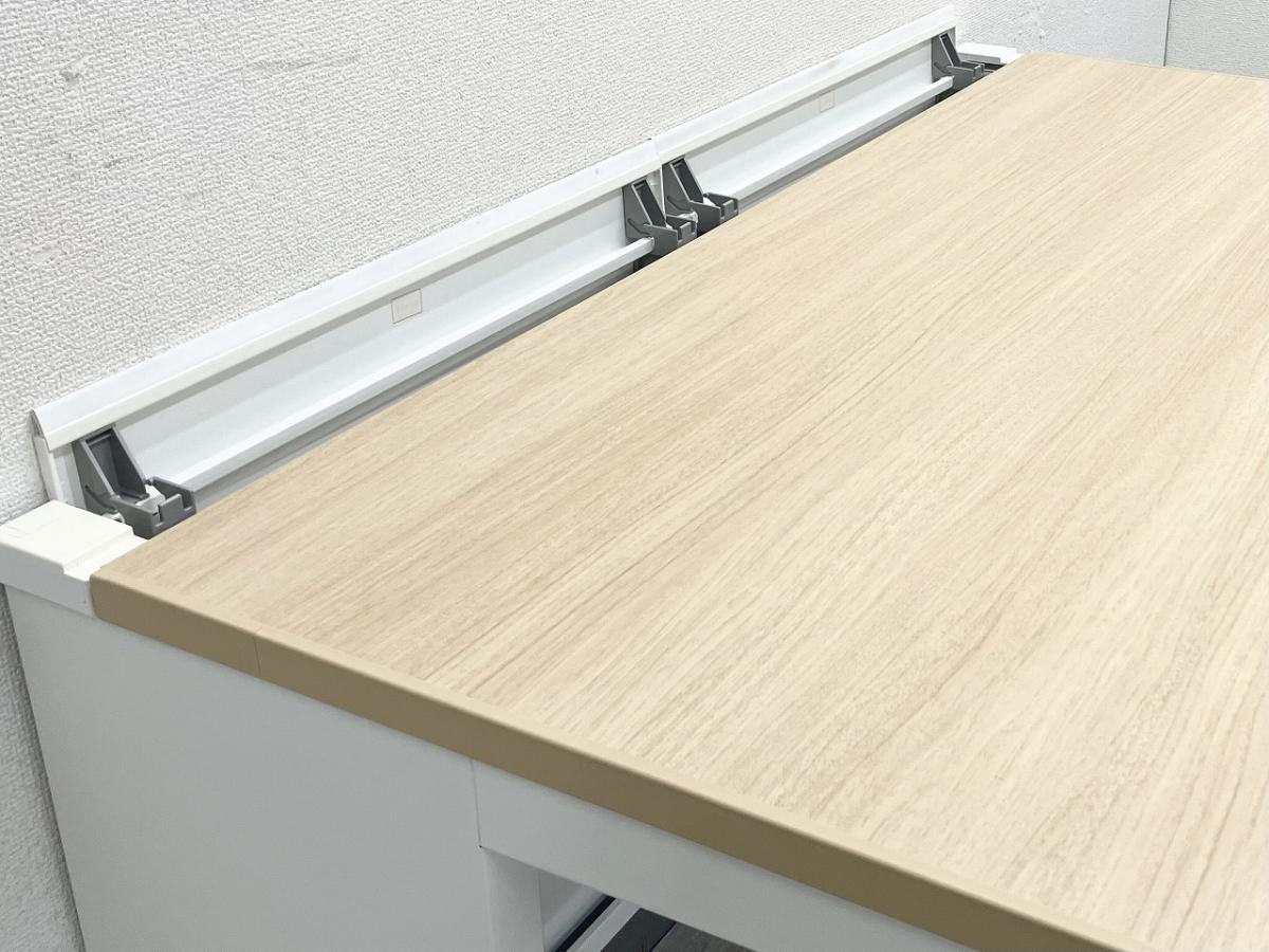 天板奥に一直線に伸びたワイヤリング機能はカバーが2分割されており、必要な部分だけ開閉できます。