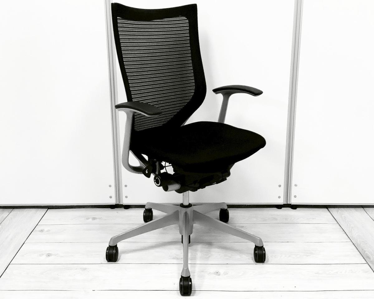 【長時間の着座でも疲れにくい!ベストなポジションが得られる先進設計!】■オカムラ バロンチェア 肘付 ブラック ハイバック シルバーフレーム ■良い椅子は腰を守る投資です!【Okamura Baron】