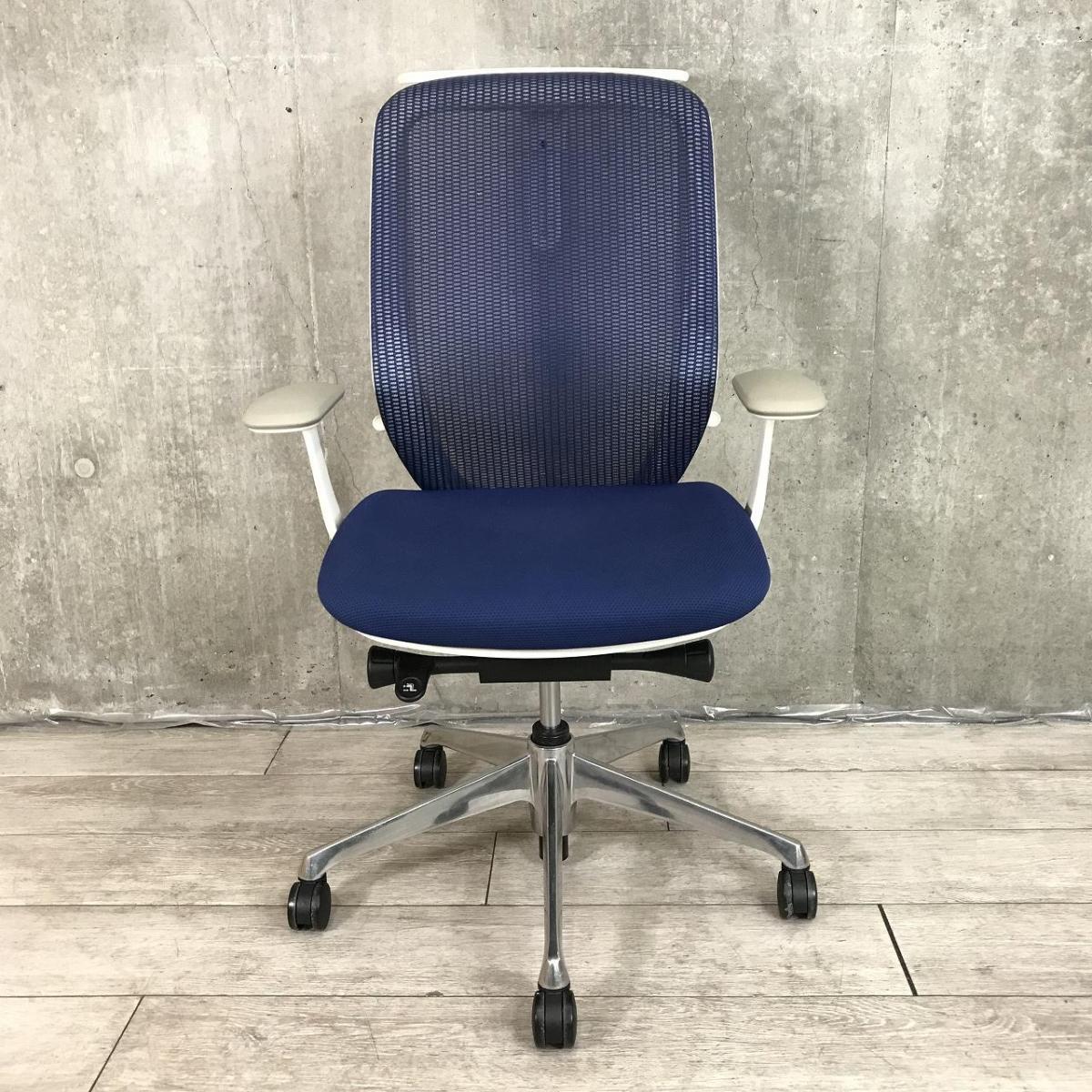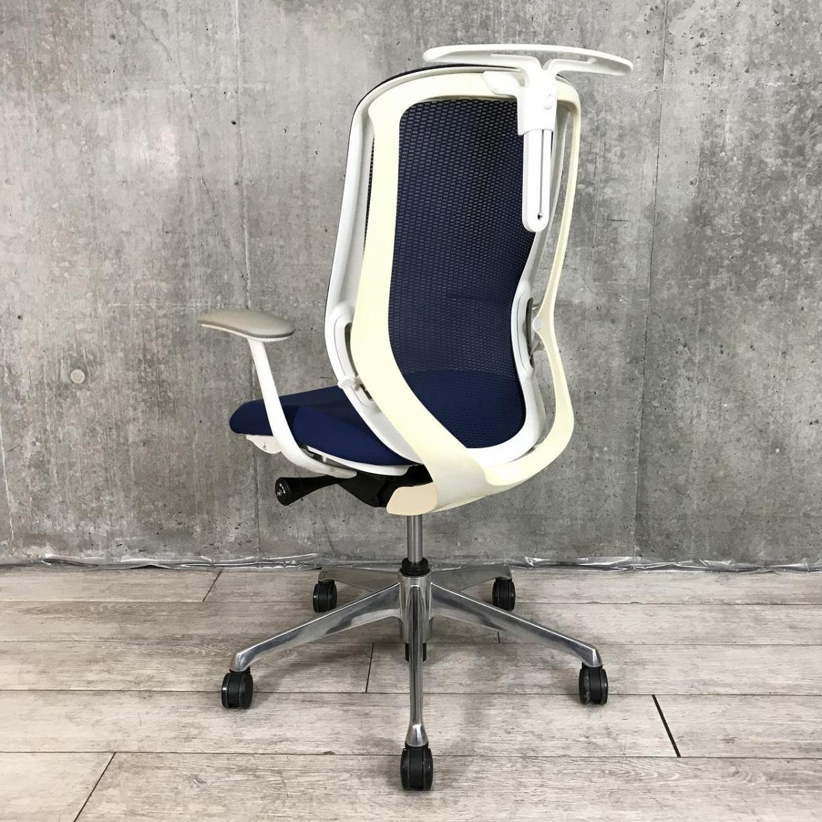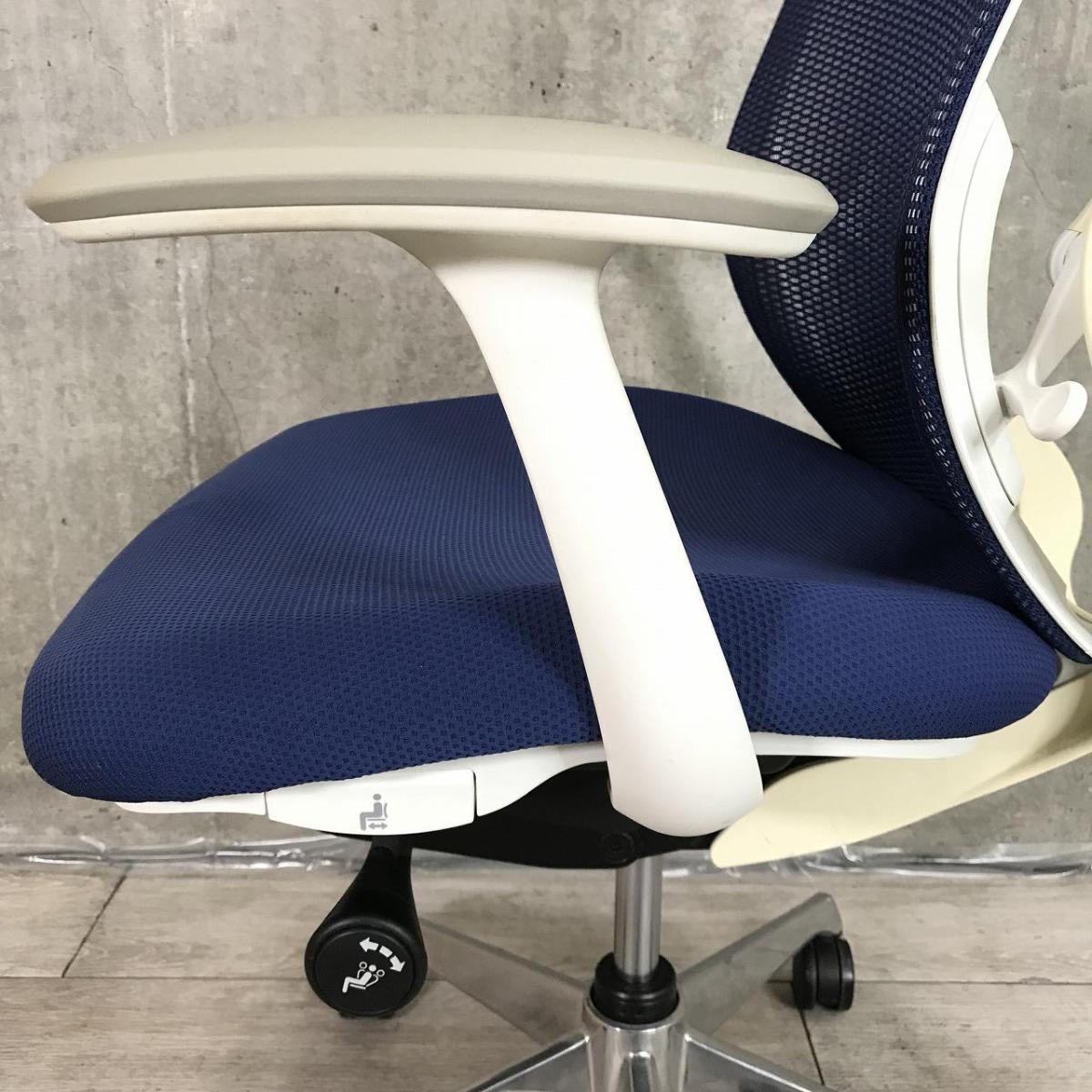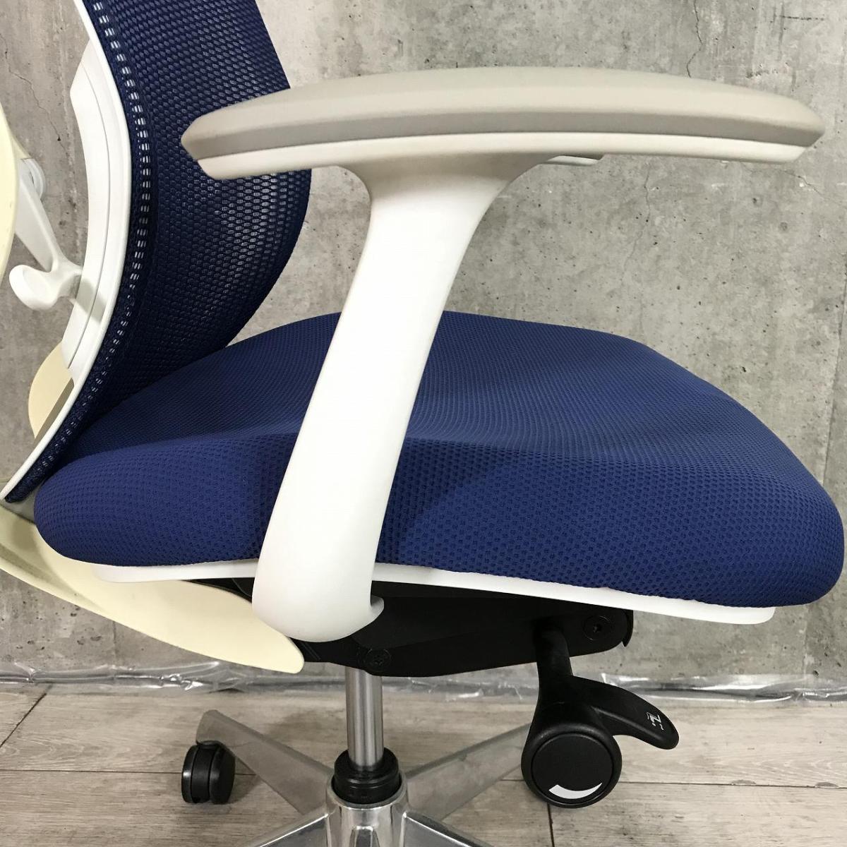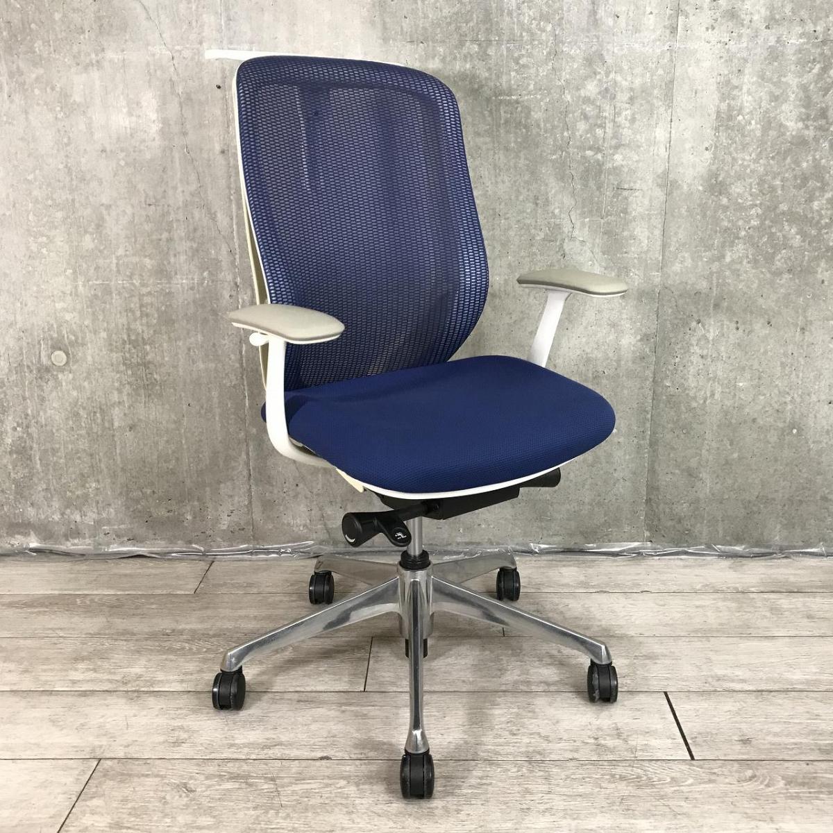【新品ヘッドレスト交換済み】オカムラ/シルフィー/ブルー/可動肘