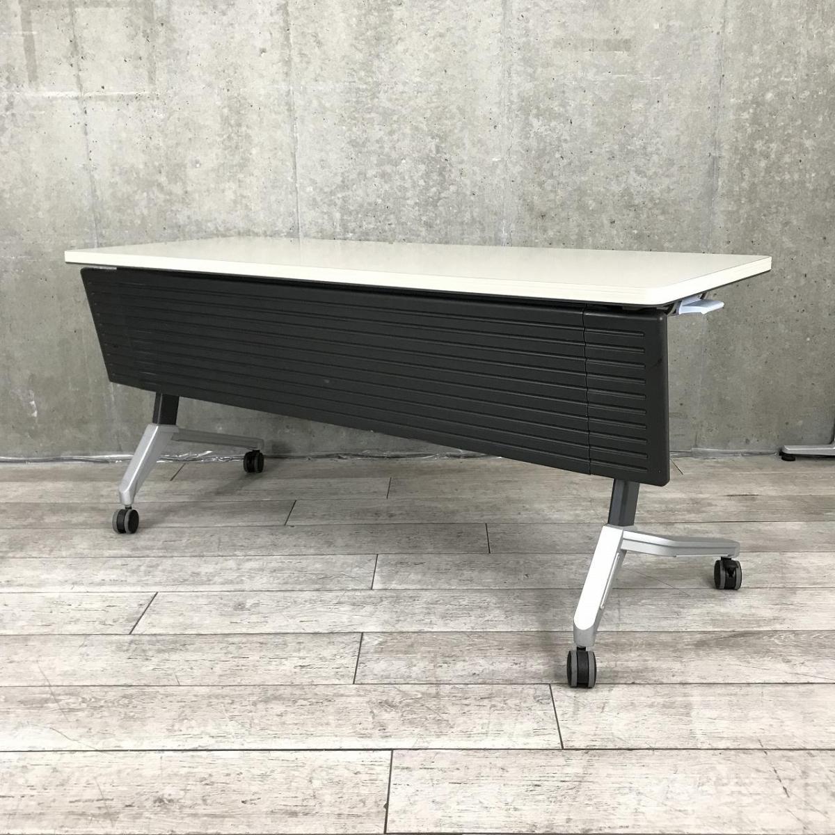 【キャスター付きで便利に使えます!】■コクヨ製 サイドスタックテーブル W1800×D600×H700mm ナチュラルグレー 幕板パネル付【折りたたみテーブル】- 川崎店
