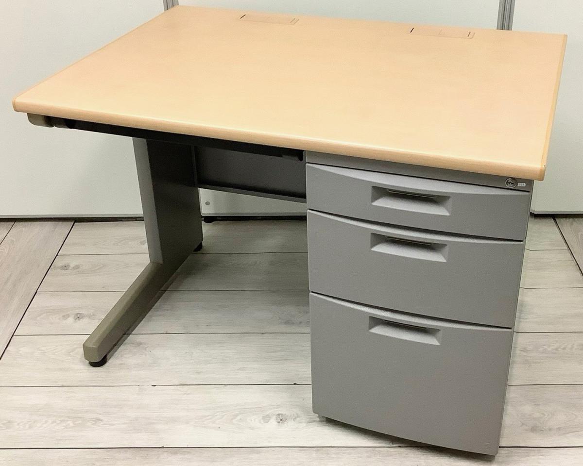 【幅1000㎜のコンパクトタイプ!使い勝手の良い3段収納の片袖机!】■イトーキ(ITOKI)製 CZNシリーズ 片袖机 ■W1000㎜ ■本体:ホワイトグレー 天板:木目調ナチュラル ■シリンダー錠【弊社使用欄:A01035550】【SN】