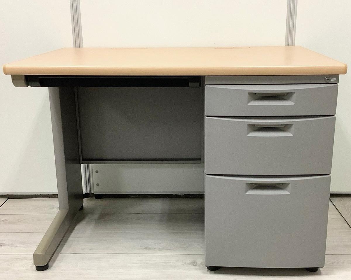 【幅1000㎜のコンパクトタイプ!使い勝手の良い3段収納の片袖机!】■イトーキ(ITOKI)製 CZNシリーズ 片袖机 ■W1000㎜ ■グレー ■シリンダー錠※横浜本店撮影画像- 横浜本店