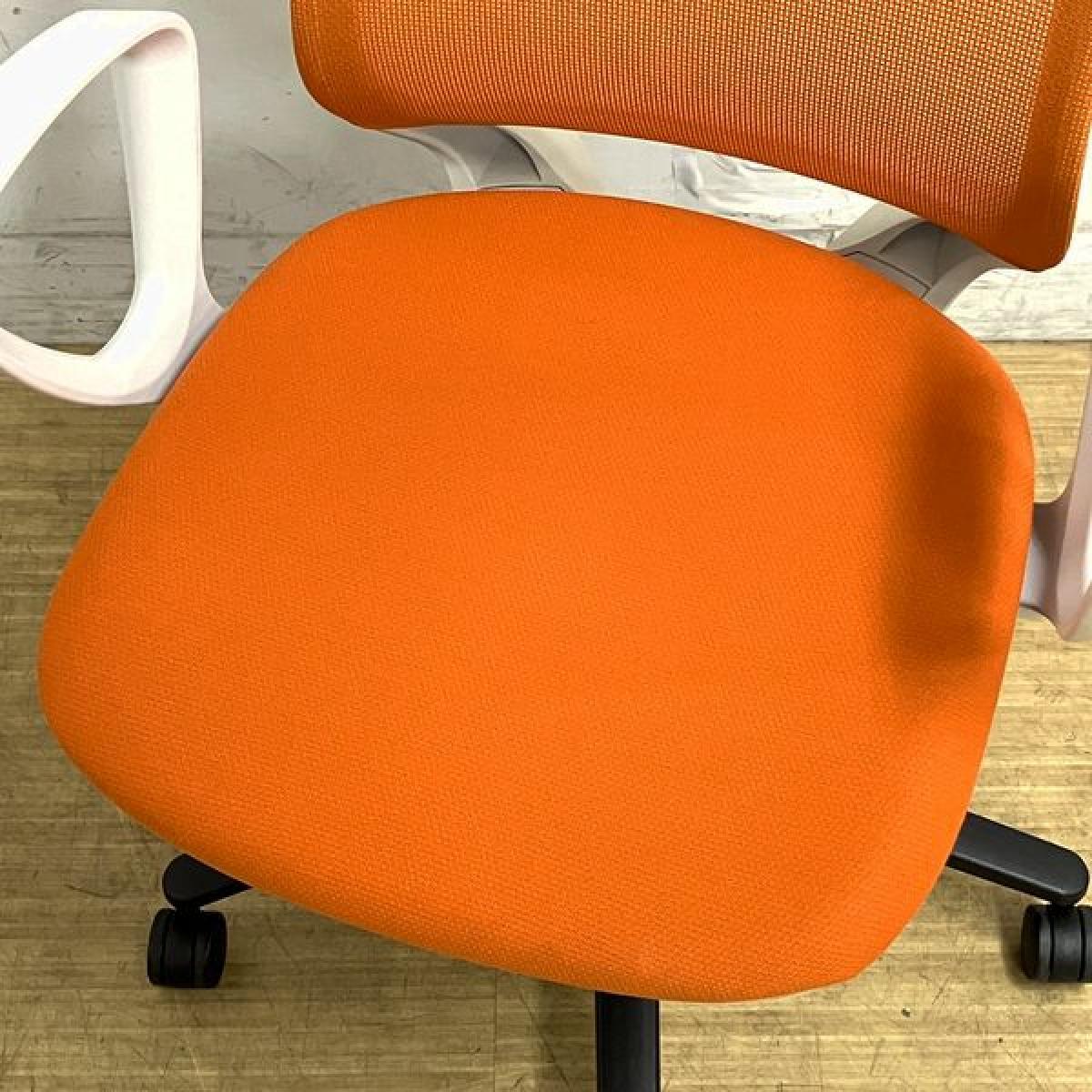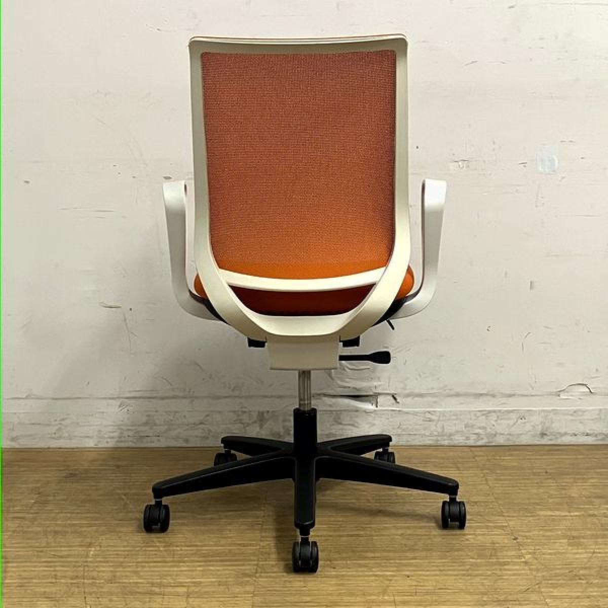 【テレワークにも最適!快適な座り心地と充実機能!】■コクヨ(KOKUYO)製 ミトラ(Mitra)チェア 肘付き ローバック 背面座面クッション ■可動肘付 ■オレンジ×ホワイトシェル×ブラック脚
