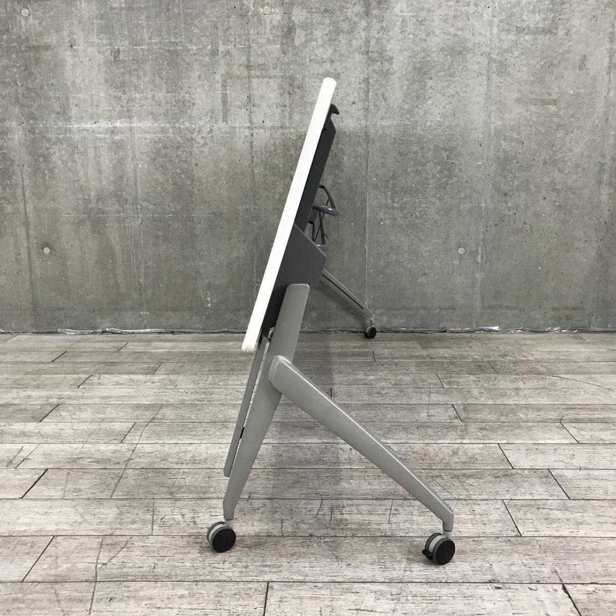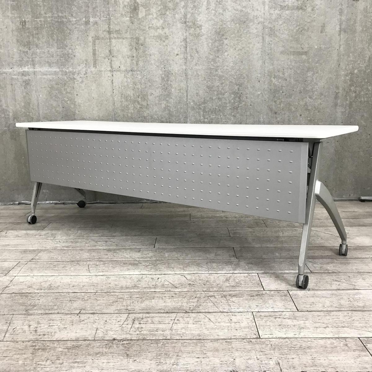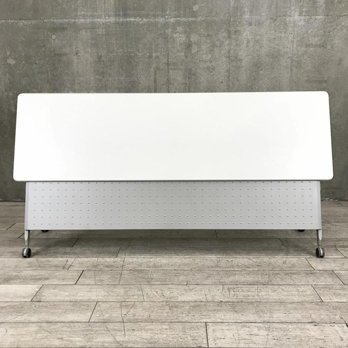 【天板跳ね上げ式でコンパクトに!キャスター付きで移動も楽々!】■ウチダ(UCHIDA)製 SHシリーズ サイドスタックテーブル 会議用テーブル ■W2100×D600㎜ ■天板:ホワイト ■幕板付き/キャスター付- 千葉店