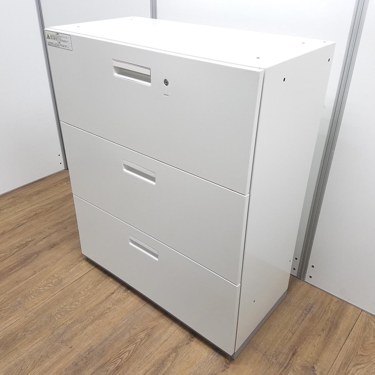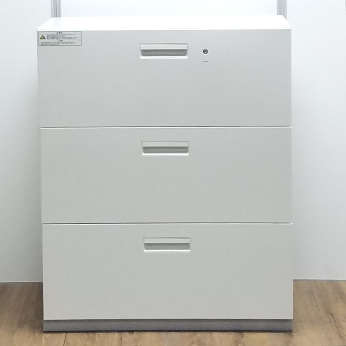 プラス(PLUS)製 L6 ホワイト シリンダー ローキャビネット オフィスで人気の必需品! 使いやすい引き出し式キャビネット! キングファイルなど収納におすすめ 3段ラテラル書庫!!- 京都東寺店