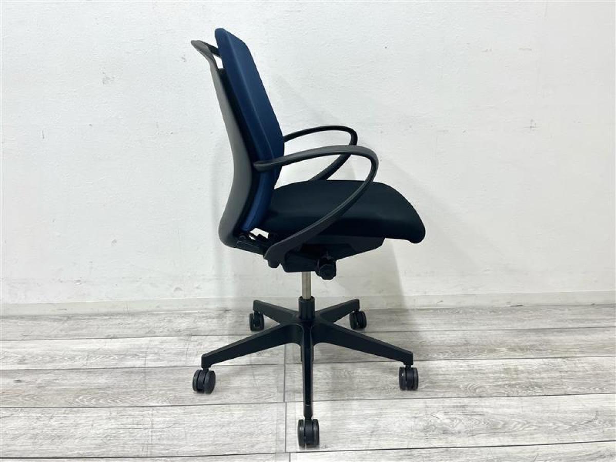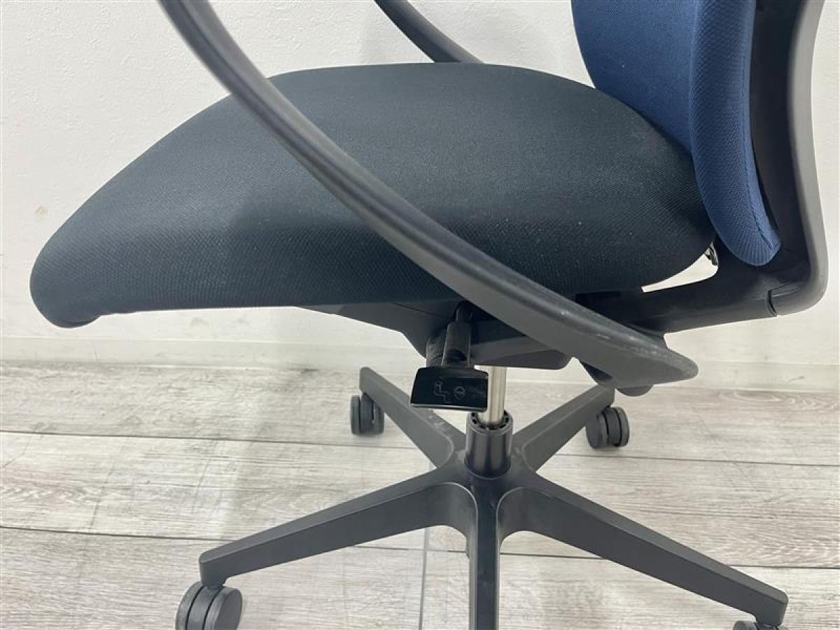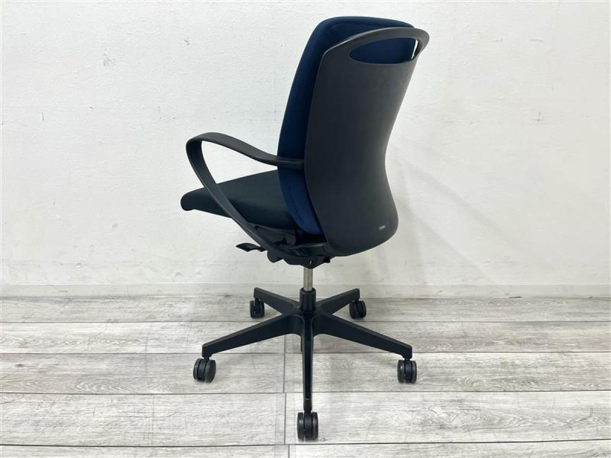 【背もたれ・座面使用感のすれあり】イトーキ製 人気高いフルゴシリーズ ブラック×ネイビーブルー 肘付きローバックチェア!!【関西倉庫在庫】