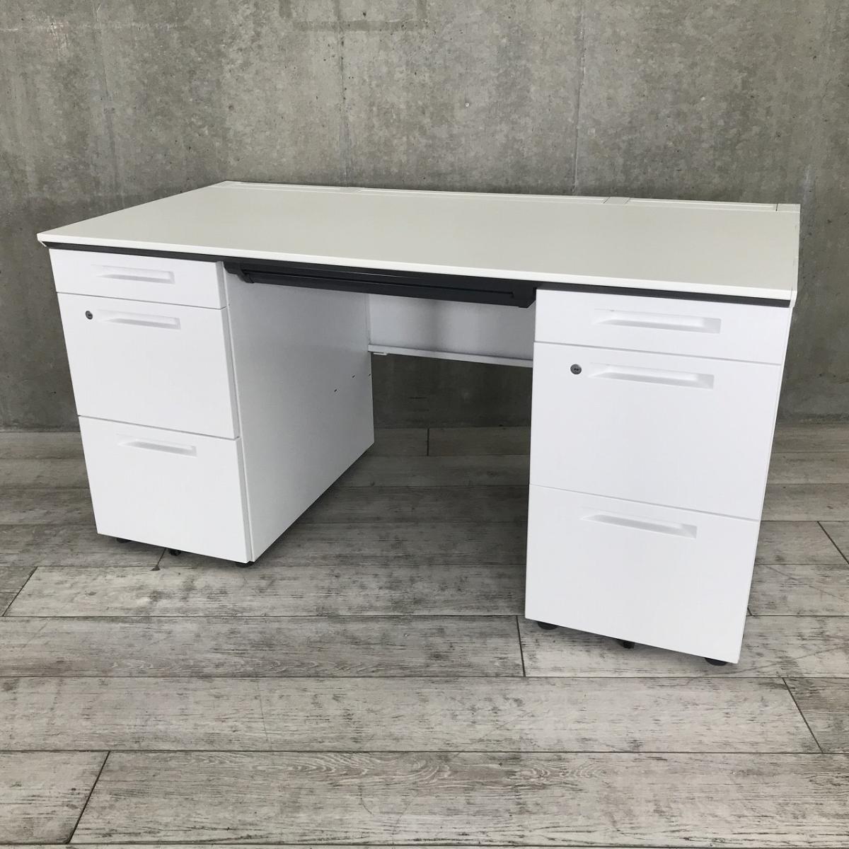 【在庫入替セール】コクヨ iSシリーズ 両袖机 W1400の定番サイズ ホワイト 鍵付き シリンダー錠 両側の引き出しで大容量の収納が可能 【愛知・名古屋・豊田・静岡・浜松】