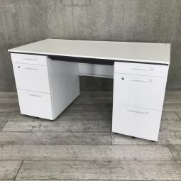 【T11】【商品入替のため、残り4台限り】コクヨ製 アイエス(IS) ホワイト 両袖 デスク W1400xD700xH720サイズ シリンダー 収納スペース充実! 机上をスッキリ整理! 幅広いワークスペースで上長席にもオススメ! W1400両袖机!!