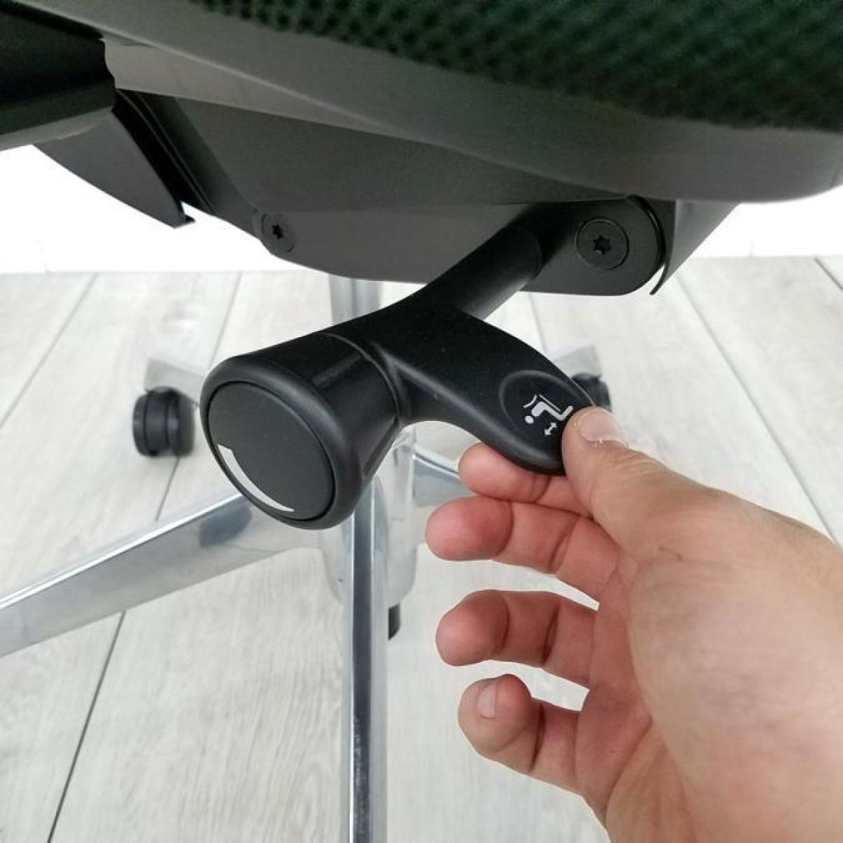 - 座面右下のダイヤル操作で、リクライニングの強弱調整が行えます。これまでのダイヤル式よりも、少ない回転数で、最弱?最強の調整が可能です。