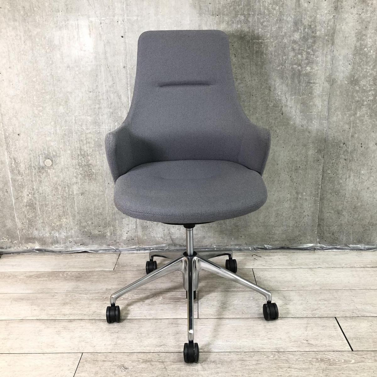 【働きやすく、居心地の良いオフィスへ!カジュアルかつ柔らかなデザインのライブスチェア入荷!】■オカムラ(okamura)製 ライブス(Lives)シリーズ 肘付 ミーティングチェア ■キャスター付 ■グレー【オカムラの新シリーズ!】- 千葉店