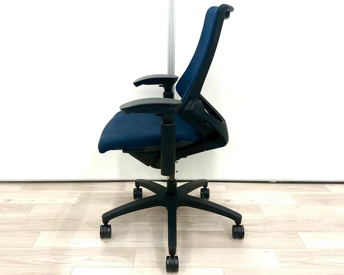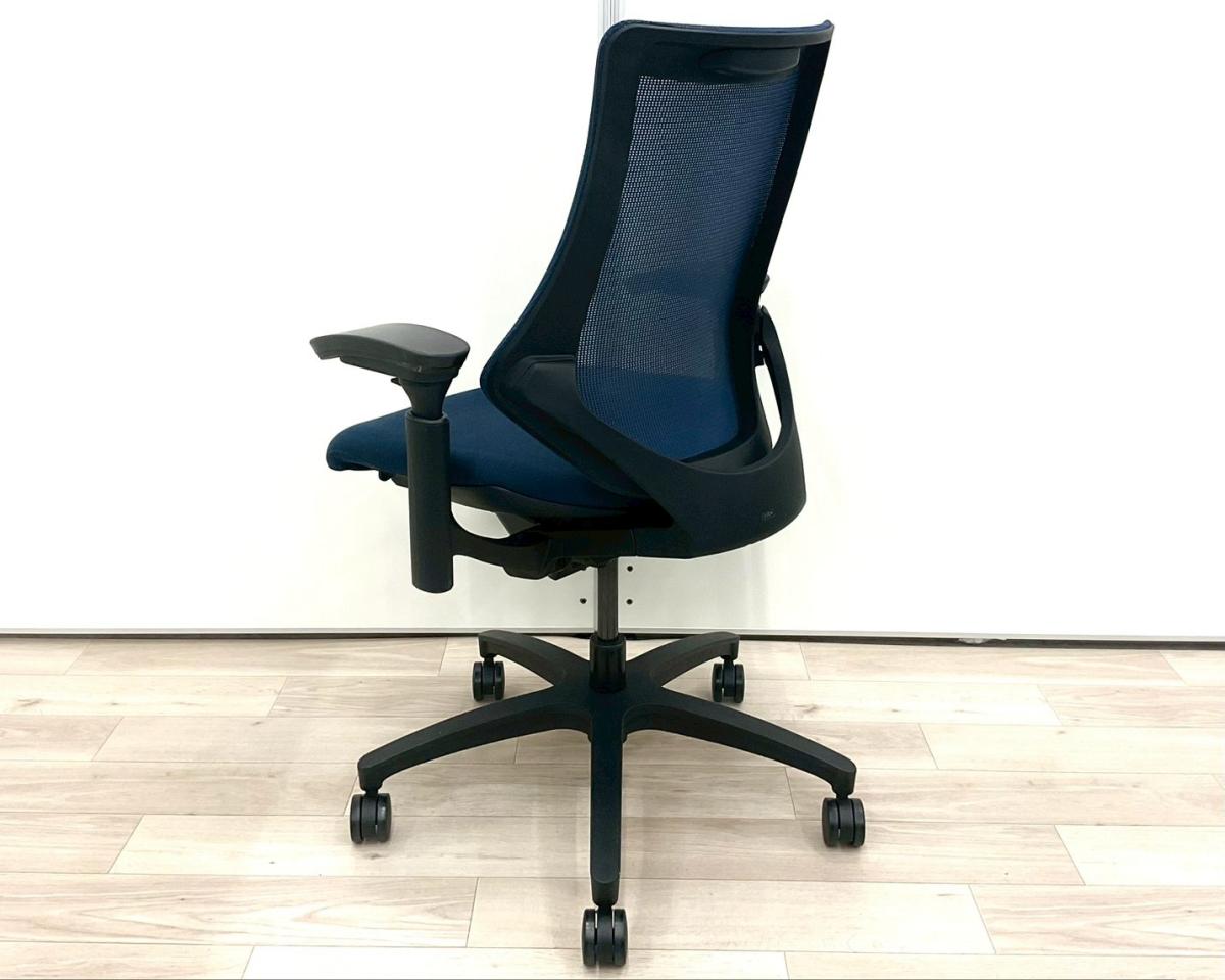 【最先端のデザインに快適な座り心地!】■イトーキ製 エフチェア 可動肘付 ネイビーブルー ■三次元フォルムが腰にフィット!【在庫入替セール品(本在庫限定価格)】