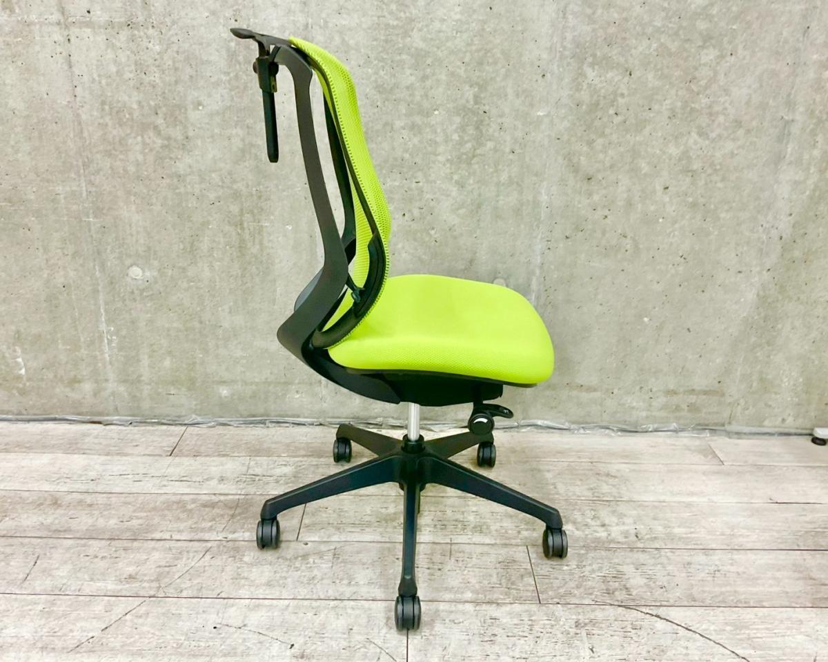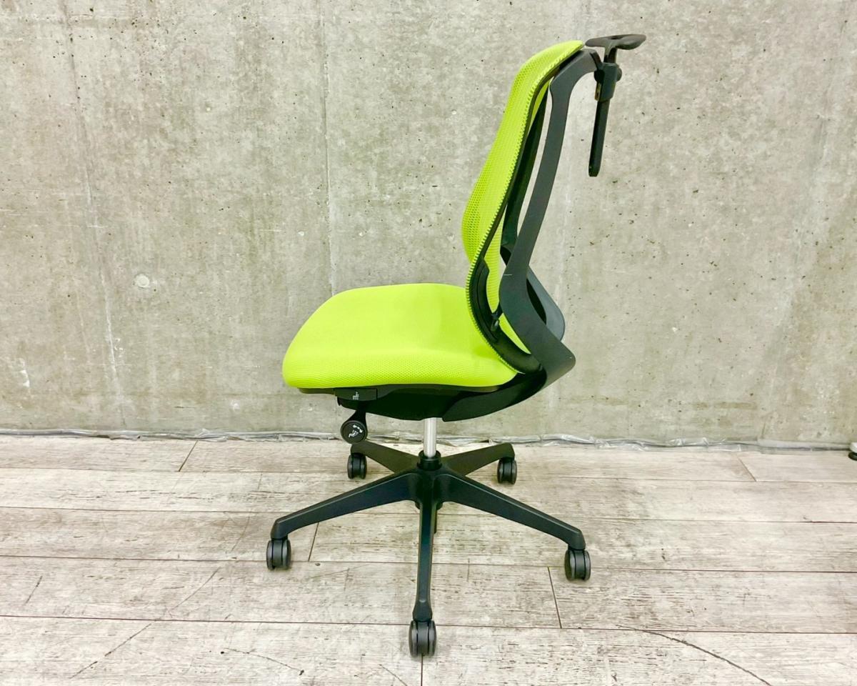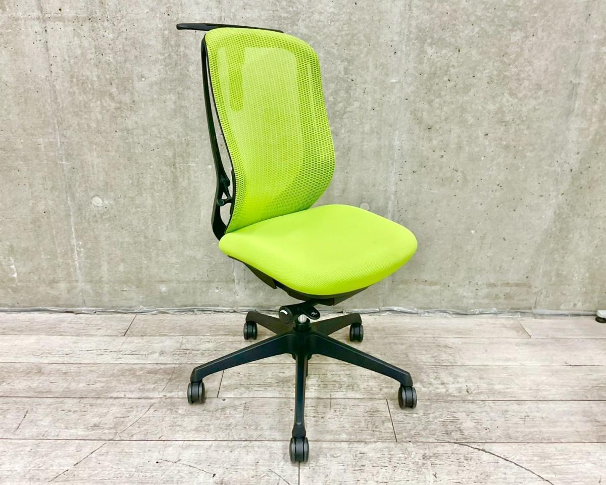 オカムラ製 シルフィ ライムグリーン ブラックフレーム 背面メッシュ ハイバック 樹脂脚 前傾チルト機能付き! オカムラ製品で最も人気を集める高機能メッシュチェア! 肘無しハイバックチェア!!