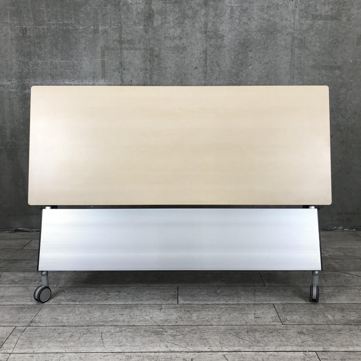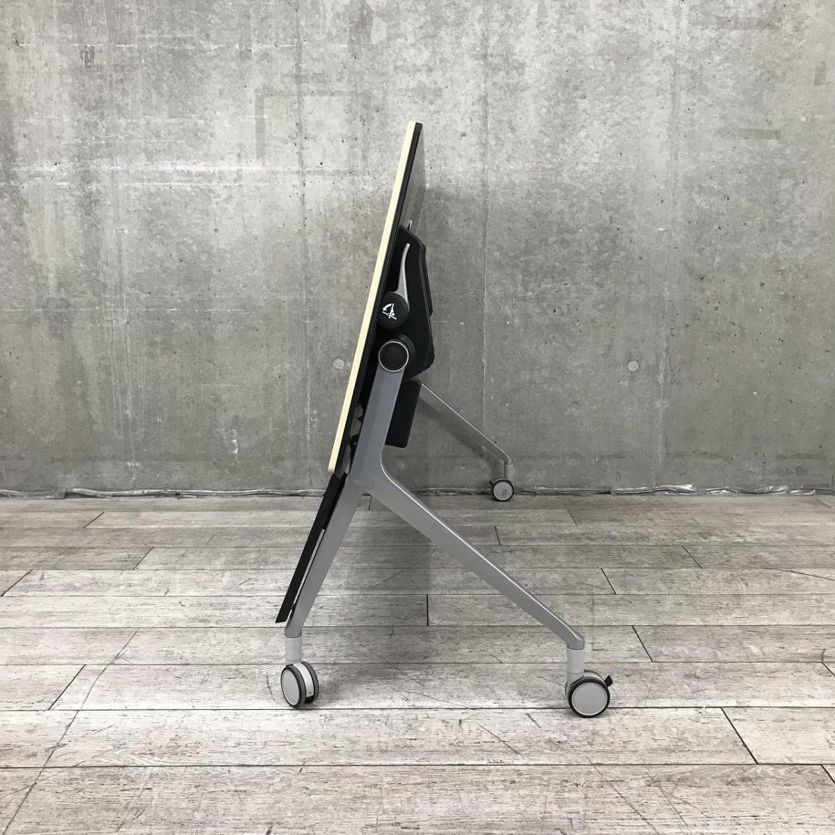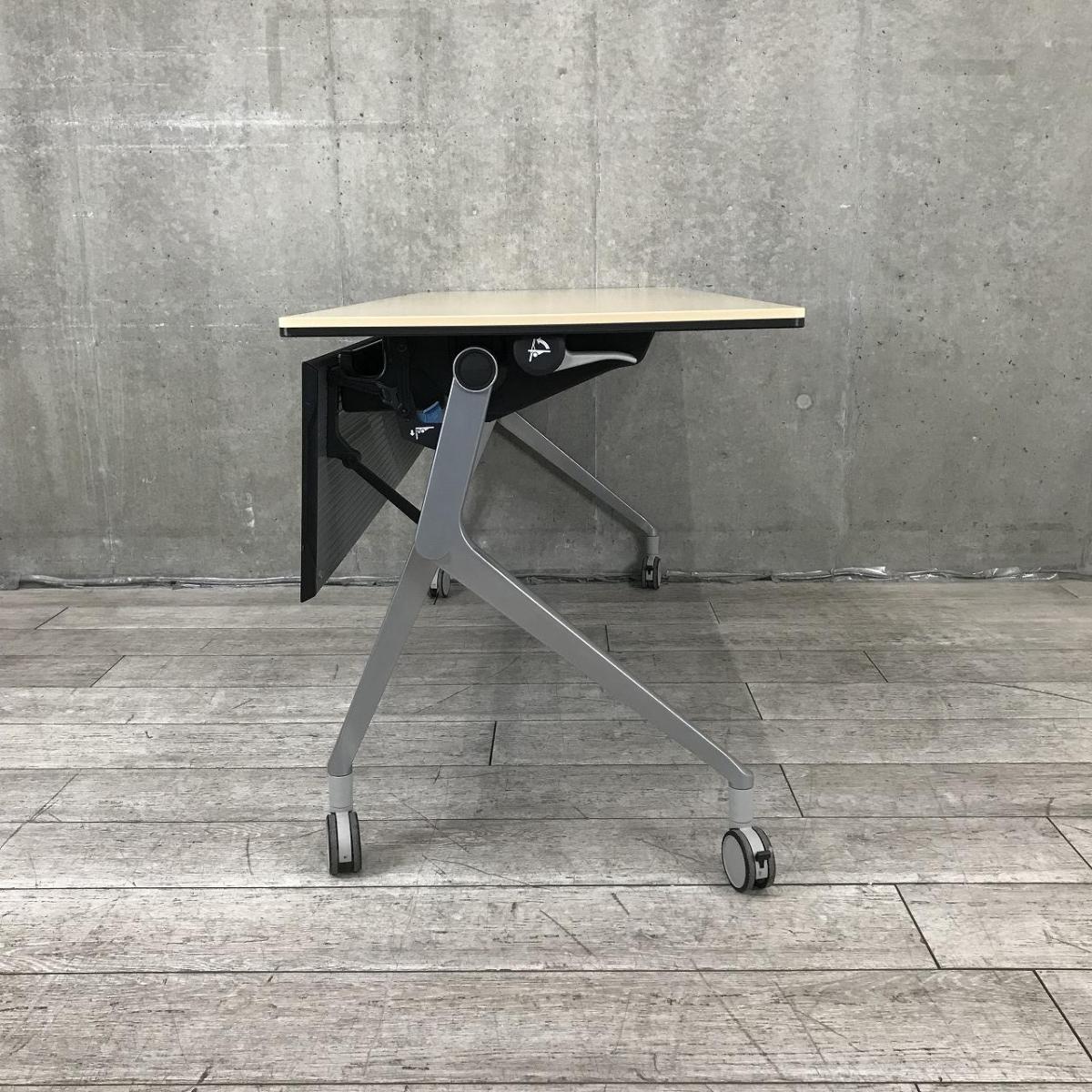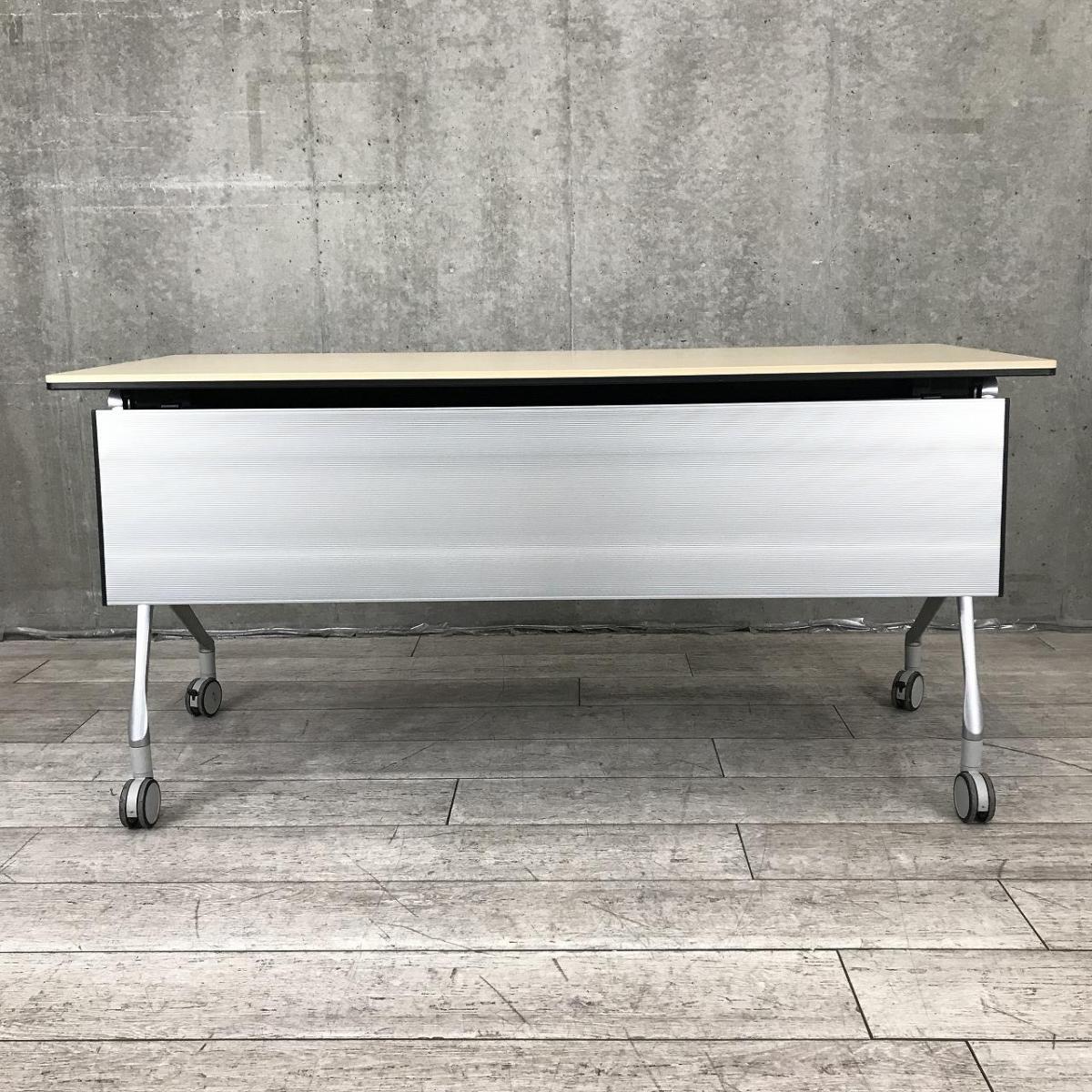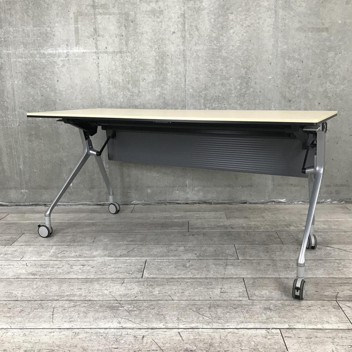 【折りたたみ収納が秀逸!スタイリッシュなデザインで高品質!】■オカムラ(okamura)製 インターアクトNT(INTER ACTNT) サイドスタックテーブル W1500×D600×H720mm ■キャスター付 ■木目調ナチュラル天板【弊社使用欄:A01033183】- 日本橋店