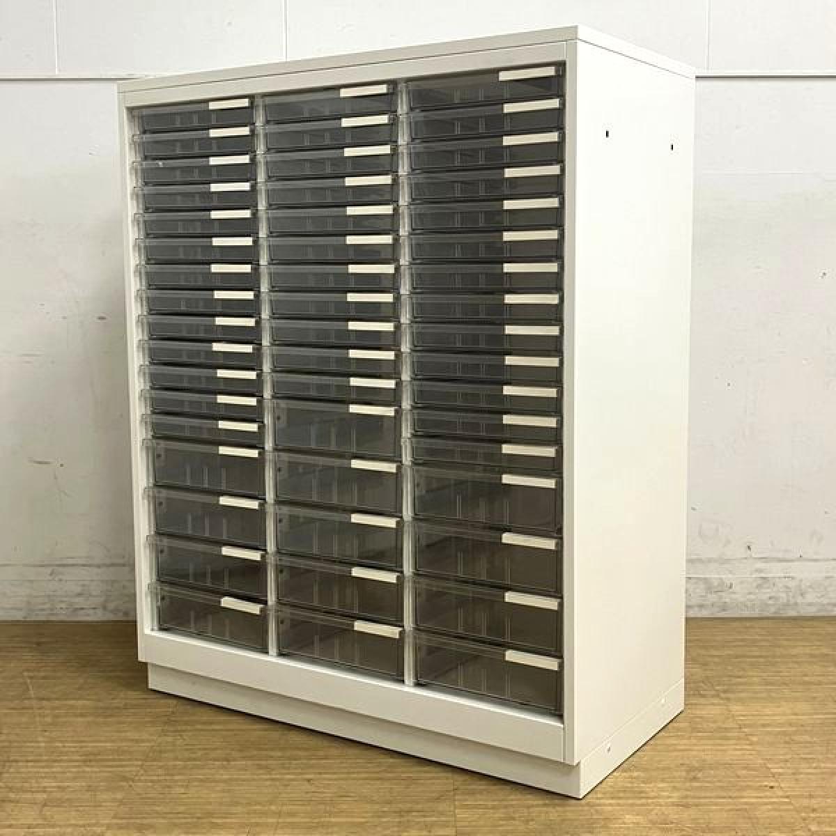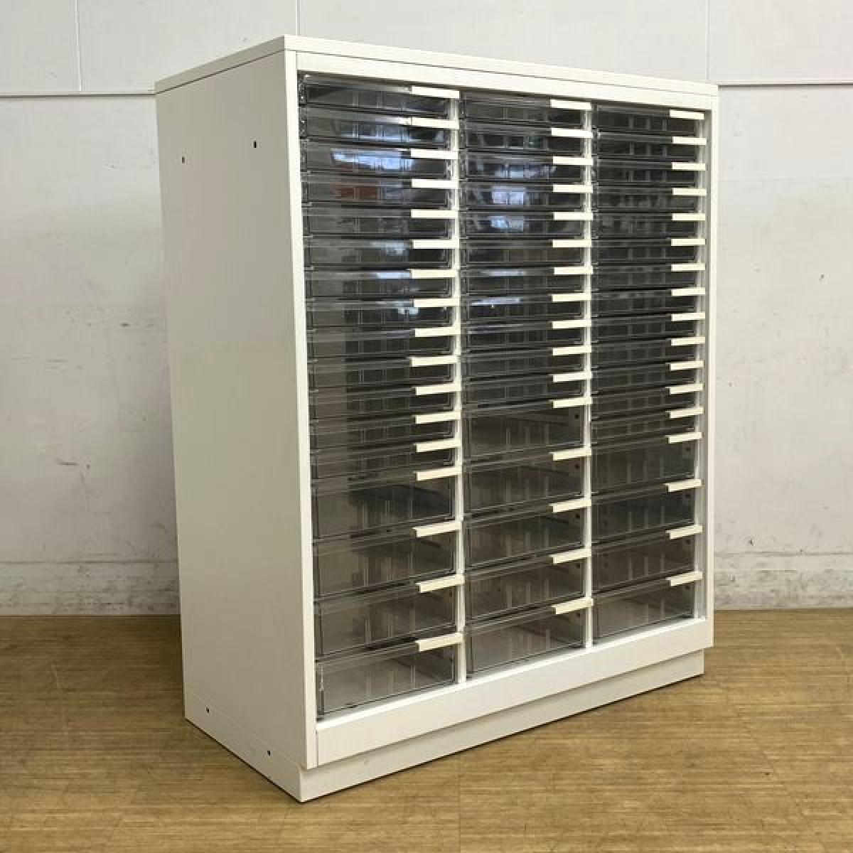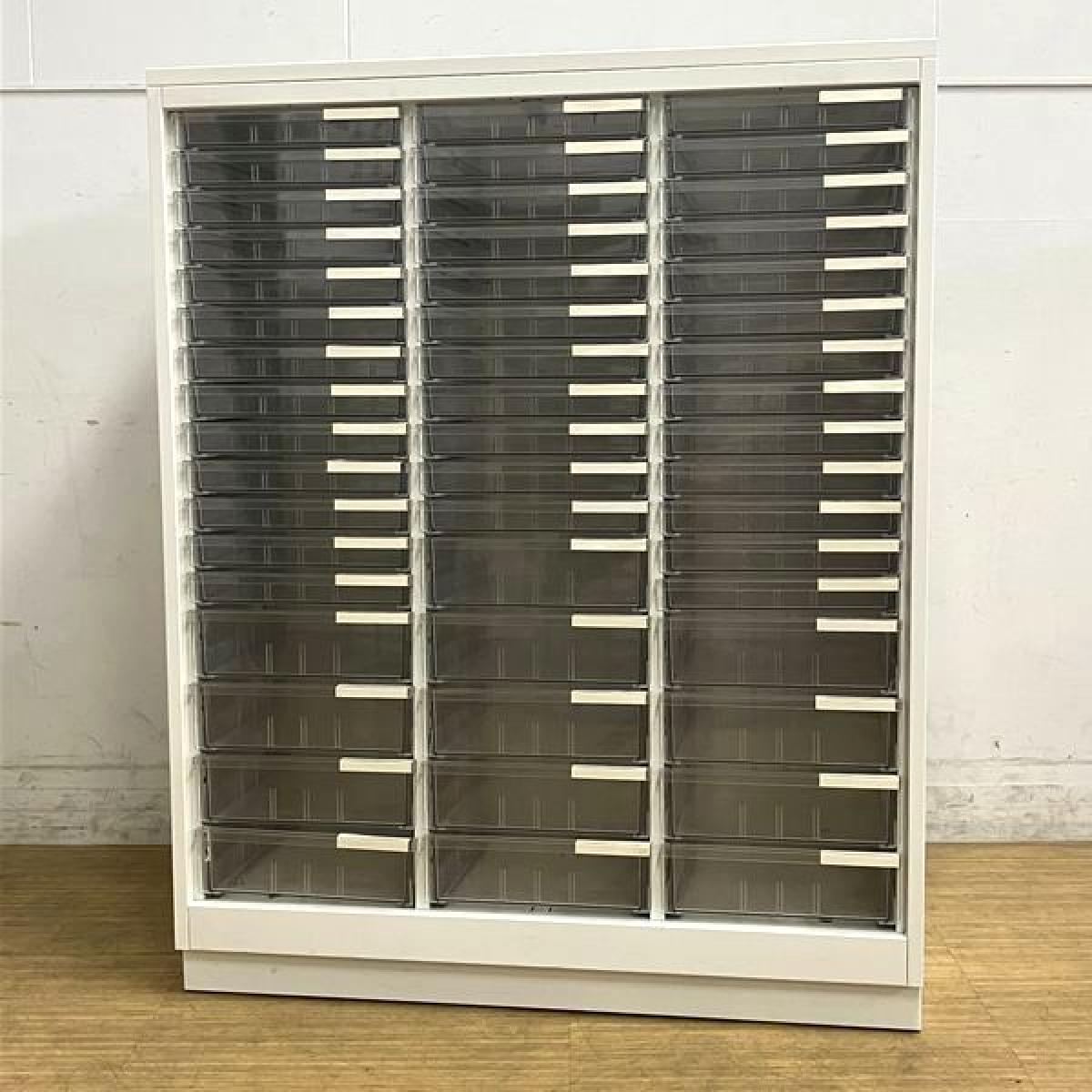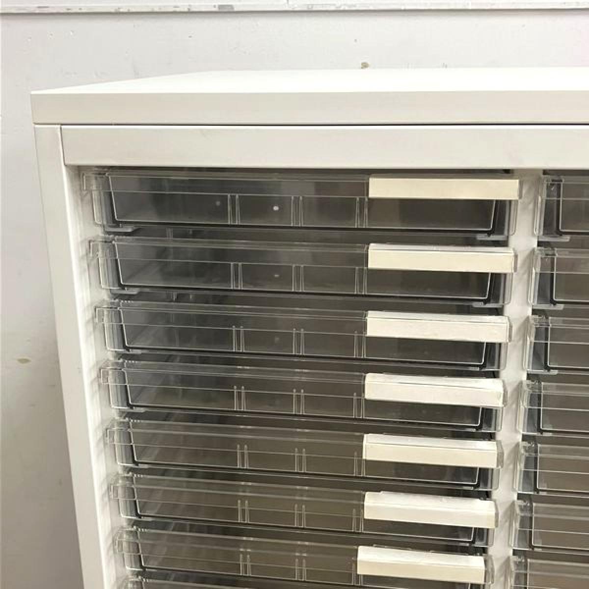 【西】【書類や小物の整理に便利!】■イトーキ(ITOKI)製 シンラインシリーズ クリスタルトレーキャビネット ■浅型タイプ 3列×21段 ■ホワイト 天板付 【書類をスッキリ整理!】全在庫品から平均的な商品を選定して撮影しております。