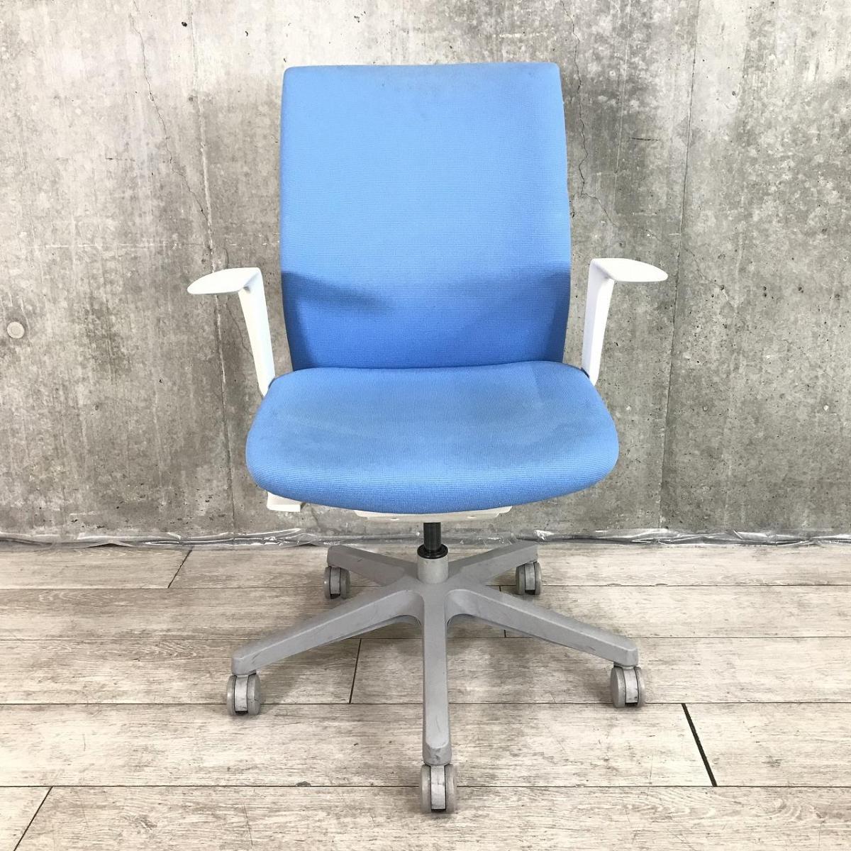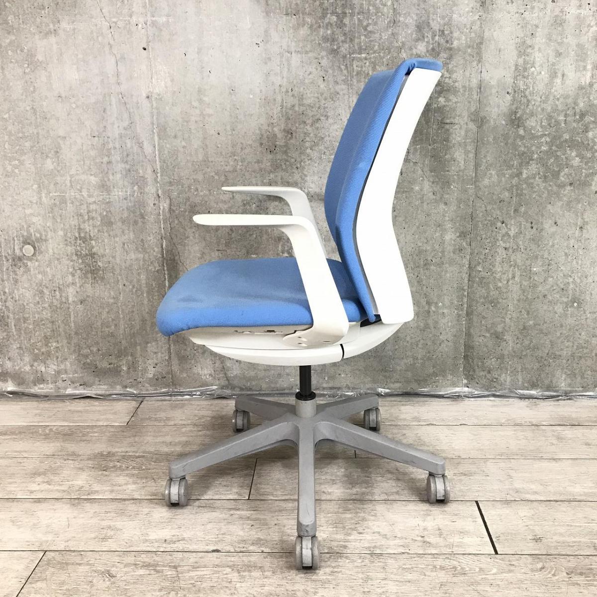 【関東倉庫在庫品】【ワークスタイルにフィットする、座る人を選ばないマルチパーパスシーティング】■オカムラ製 オムネス 肘付ローバックチェア ■ライトブルー【弊社使用欄:A01008895】【ECBMC】- 渋谷サテライト