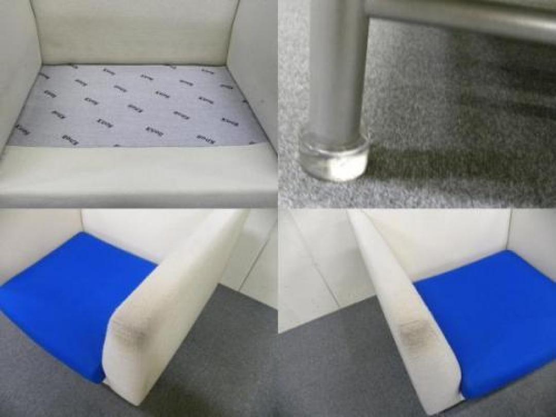 - 若干あり傷・破れ・ほつれ・へたり・しわが一部ある。(例、座面・背もたれ、脚部等にある。)