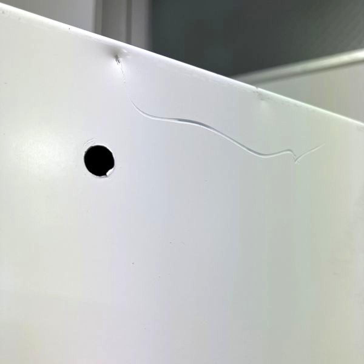 - 目立つ箇所あり傷・凹みが多数、深い傷・凹みが一部ある。(例、天板、正面、背部、サイド部分にある。)
