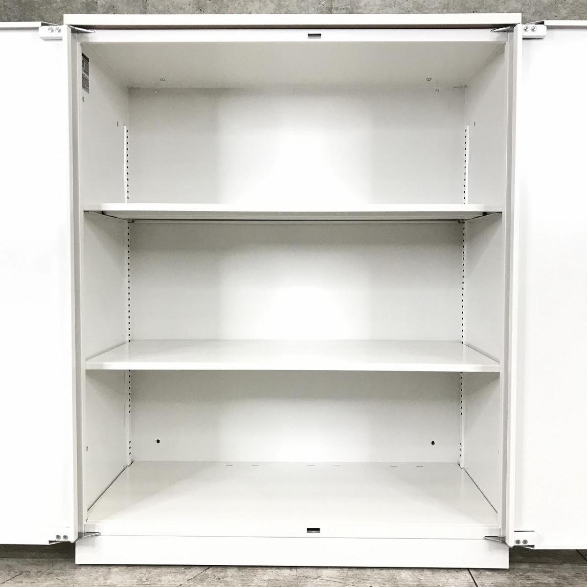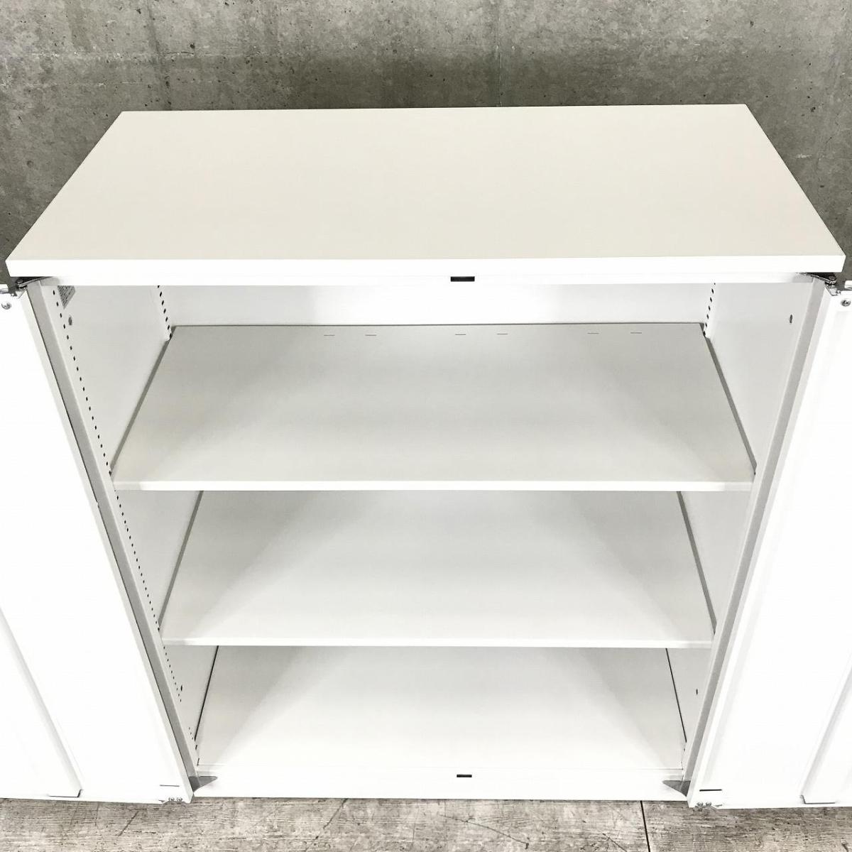 【オフィスの定番!大きく開いて見やすい両開き書庫!】■イトーキ(ITOKI)製 シンラインシリーズ (THIN LINE) 両開き書庫 ローキャビネット ■シリンダー錠 ■ホワイト