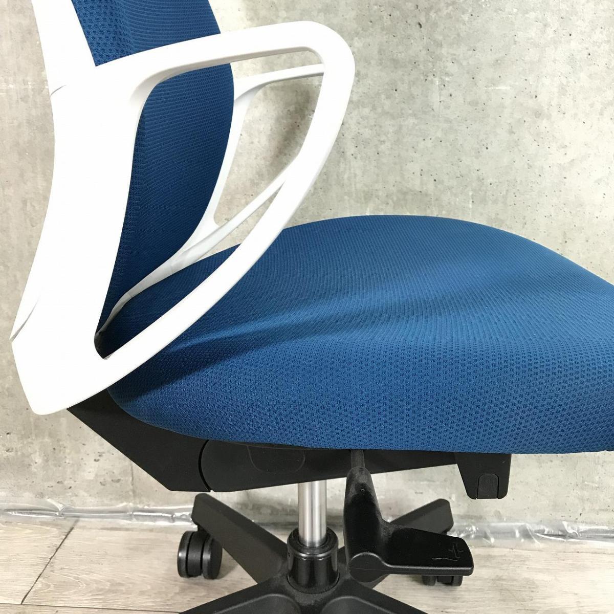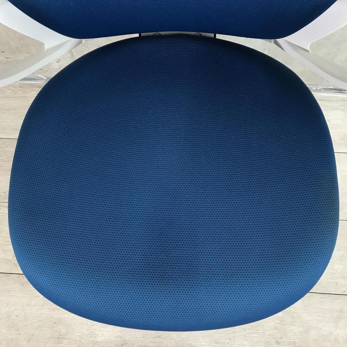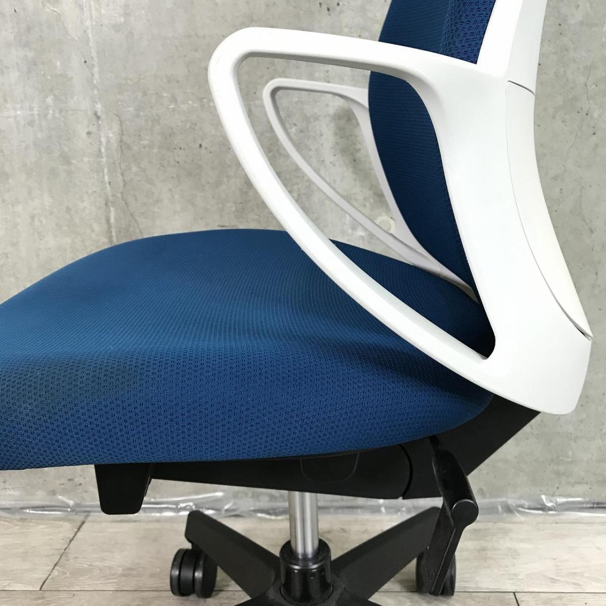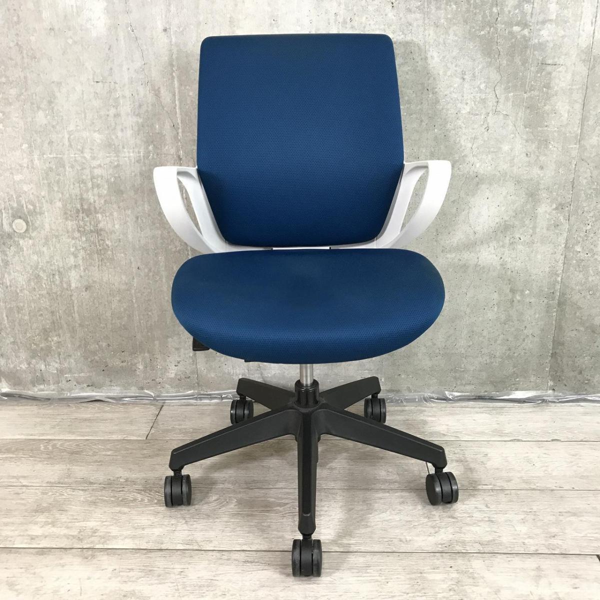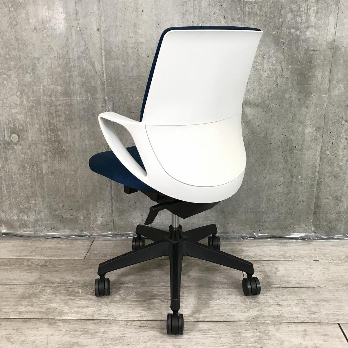 【デスクにスッキリ収納できるコンパクト設計!スマートデザインで使い勝手抜群!】■コクヨ(KOKUYO)製 ピコラ(picora)チェア 肘付き ローバック ■サークル肘 ■プルシアンブルー×ホワイトシェル×脚ブラック※背面日焼け有【2509】弊社使用欄【A01038442】