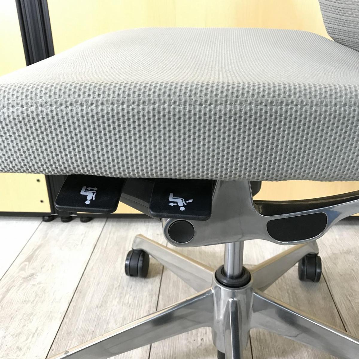 座面の高さや前後などの基本的な調整レバーが座面裏の前方に集約されており、姿勢を変えずに調節ができます。