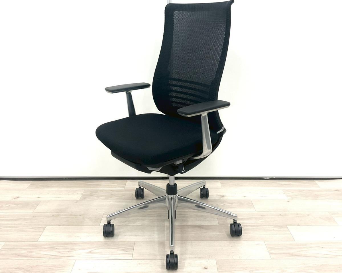 前傾機能付き高級チェア!重厚感のあるブラック×ポリッシュ仕様 応接室や会議用にもおすすめ! ■コクヨ/ベゼル/ブラック テクスチャードメッシュ