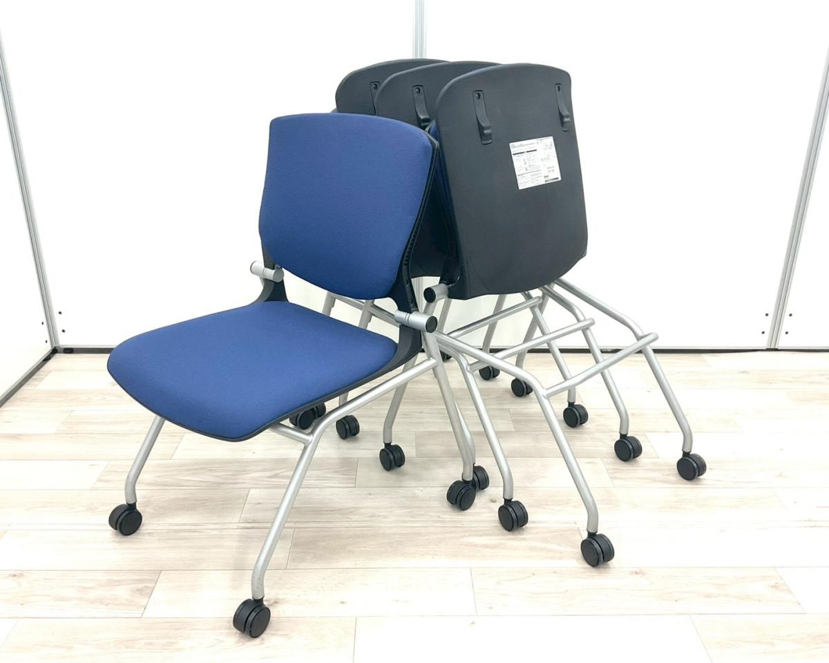 【背パットあり!長時間のミーティングでも疲れにくい!】■オカムラ(okamura)製 グラータ (Grata) シリーズ ミーティングチェア 会議用 肘無し キャスター付 ■ブルー×ブラックシェル【弊社使用欄:A01038681】【KN】サーキュラーバリューCO2削減量の算出について