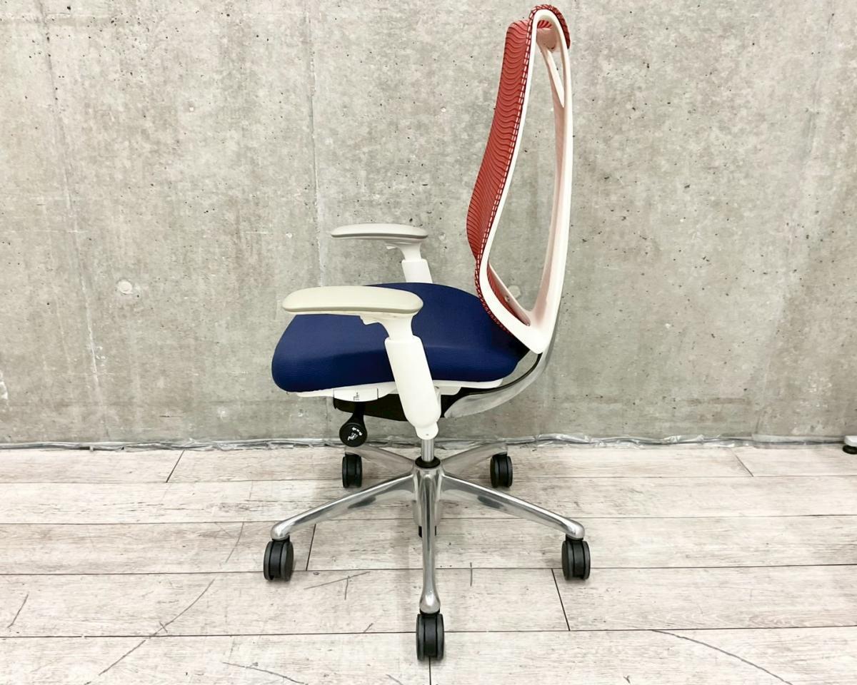 【在庫入替セール】【人間工学から生まれた最先端のワーキングチェア!】■オカムラ サブリナチェア 可動肘付 背:レッド / 座:ダークブルー ■流れるような美しいフォルム!姿勢に心地よくフィット!【T10】- なんば日本橋店