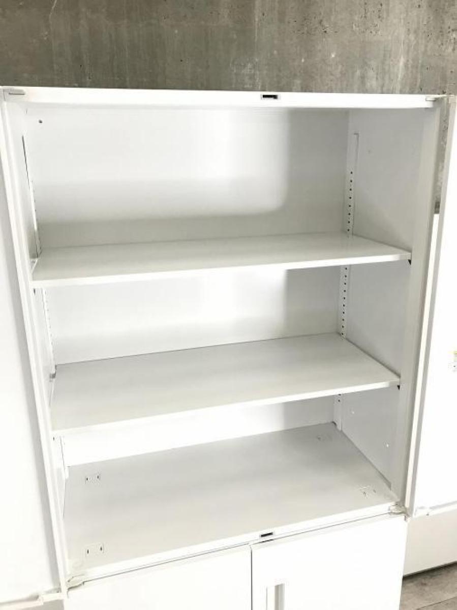 【残り1セットのみ!上下で分けて収納可能!書類や備品等の整理にぜひ!】【書類をまとめて収納できる!大容量書庫セット!】■ウチダ ハイパーストレージシリーズ 上下書庫セット(上:両開き 下:両開き) ホワイト 《オフィスバスターズ福岡博多店は、福岡を拠点として、日本全国へ中古オフィス用品・オフィス家具を提供しております》