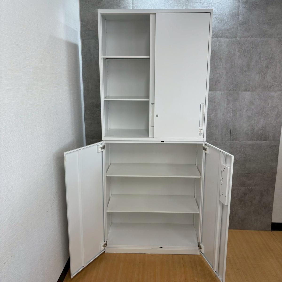 【オフィスの書類をまとめて整理!希少な両開き+引き違い書庫セットが入荷!!】■コクヨ(KOKUYO)製 エディアシリーズ 両開き+引き違い 書庫セット H2015㎜ ■2枚扉 ■シリンダー錠 ■ホワイト【AD】