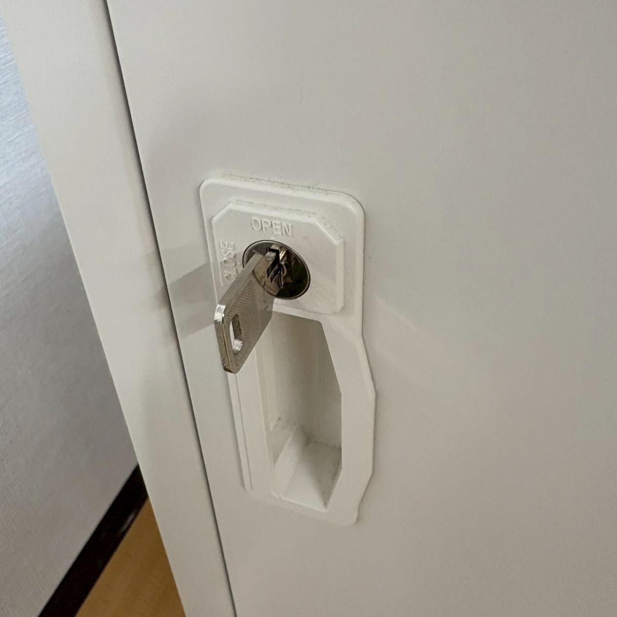 ③特徴:スチール製 シリンダー錠(鍵付き)