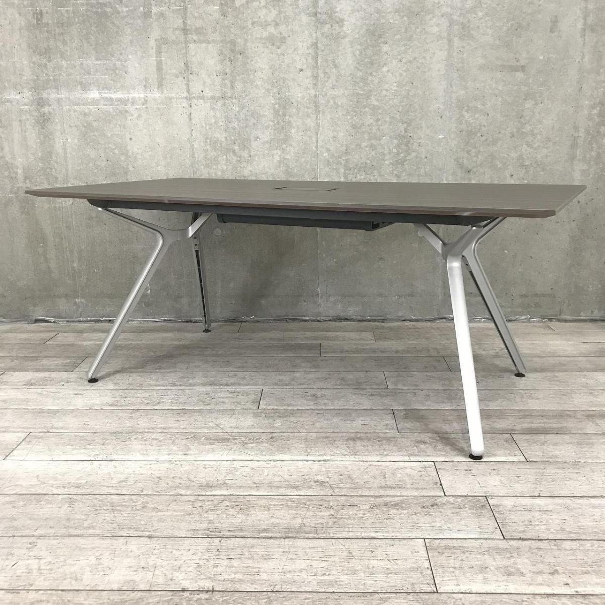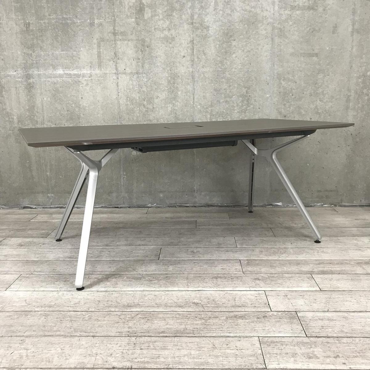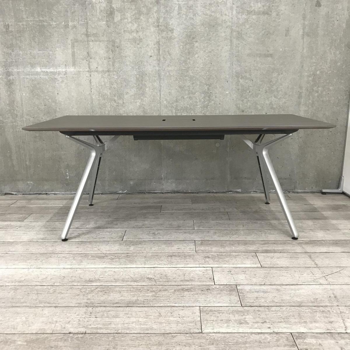 【高級感抜群の幅1800mmの人気ワークデスク!】■イトーキ(ITOKI)製 DZテーブルシリーズ ミーティングテーブル 大型テーブル W1800×D900㎜ ■船底エッジ ■配線カバー付 ■天板:木目ブラウン×脚:シルバー- なんば日本橋店