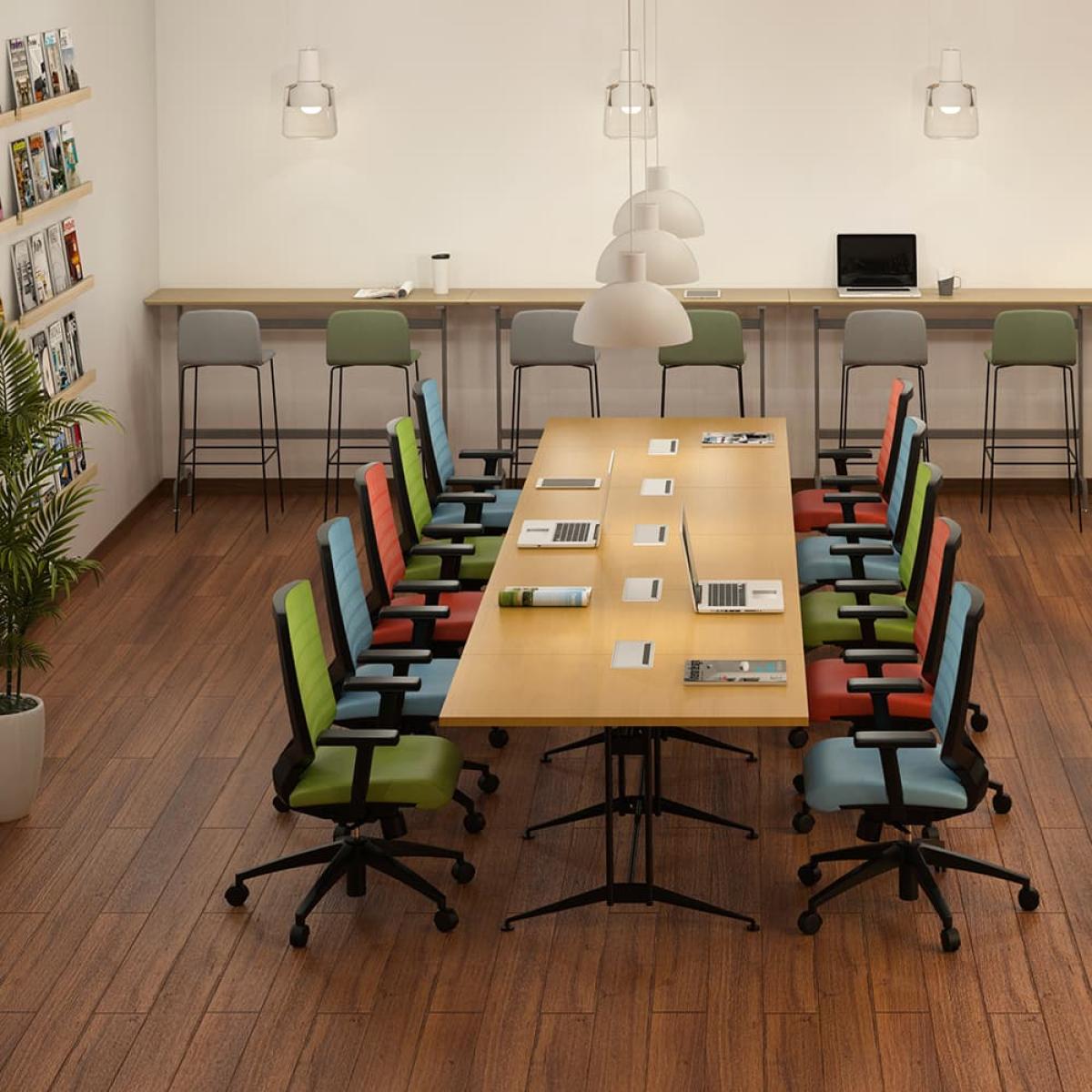 足さばきの良いT字脚タイプの大会議テーブル基本ナチュラル。