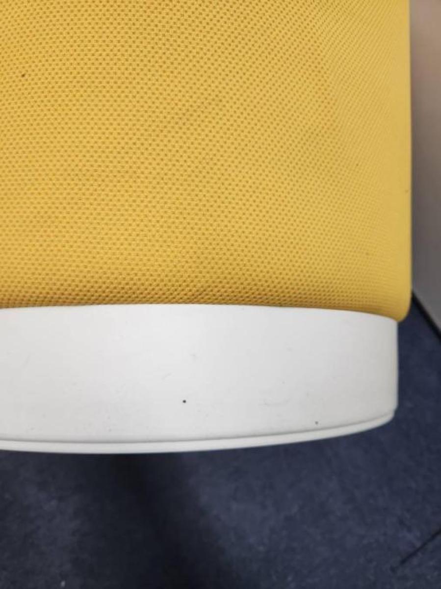 - かなり強い濃い黄ばみ・変色が商品全体にある。(例、座面・背もたれ、脚部等にある。)