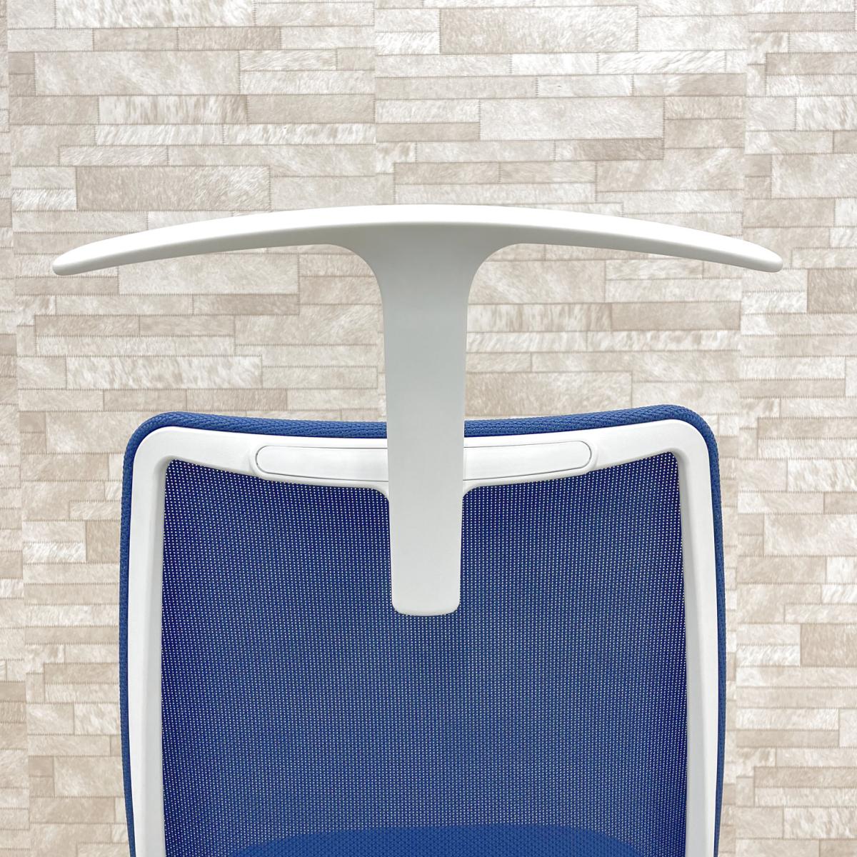 ★【K12】【T10】【K8】【商品入替のため、残り5脚限り】【23年製】オカムラ製 ポータム ブルー ホワイトフレーム 背面メッシュ コートハンガー 座面前後調整 肘無しハイバックチェア!!