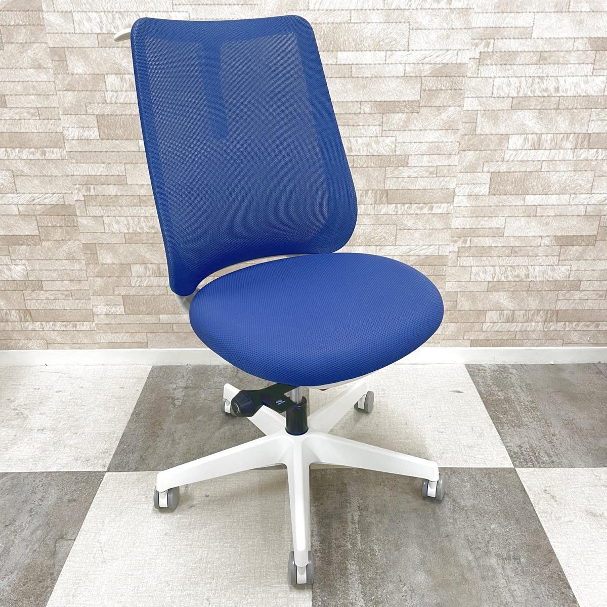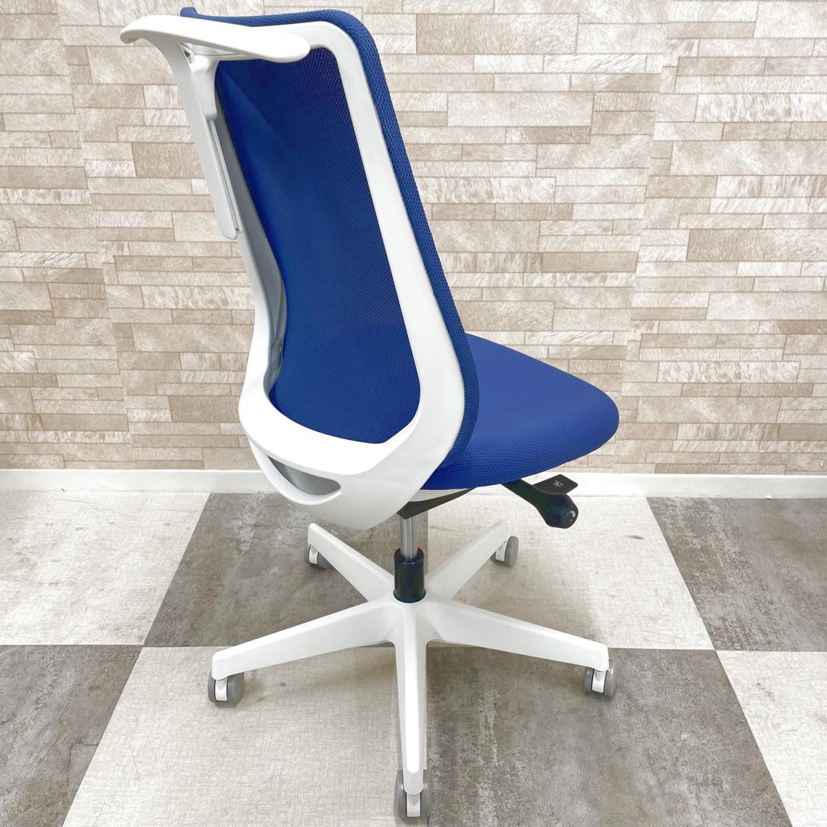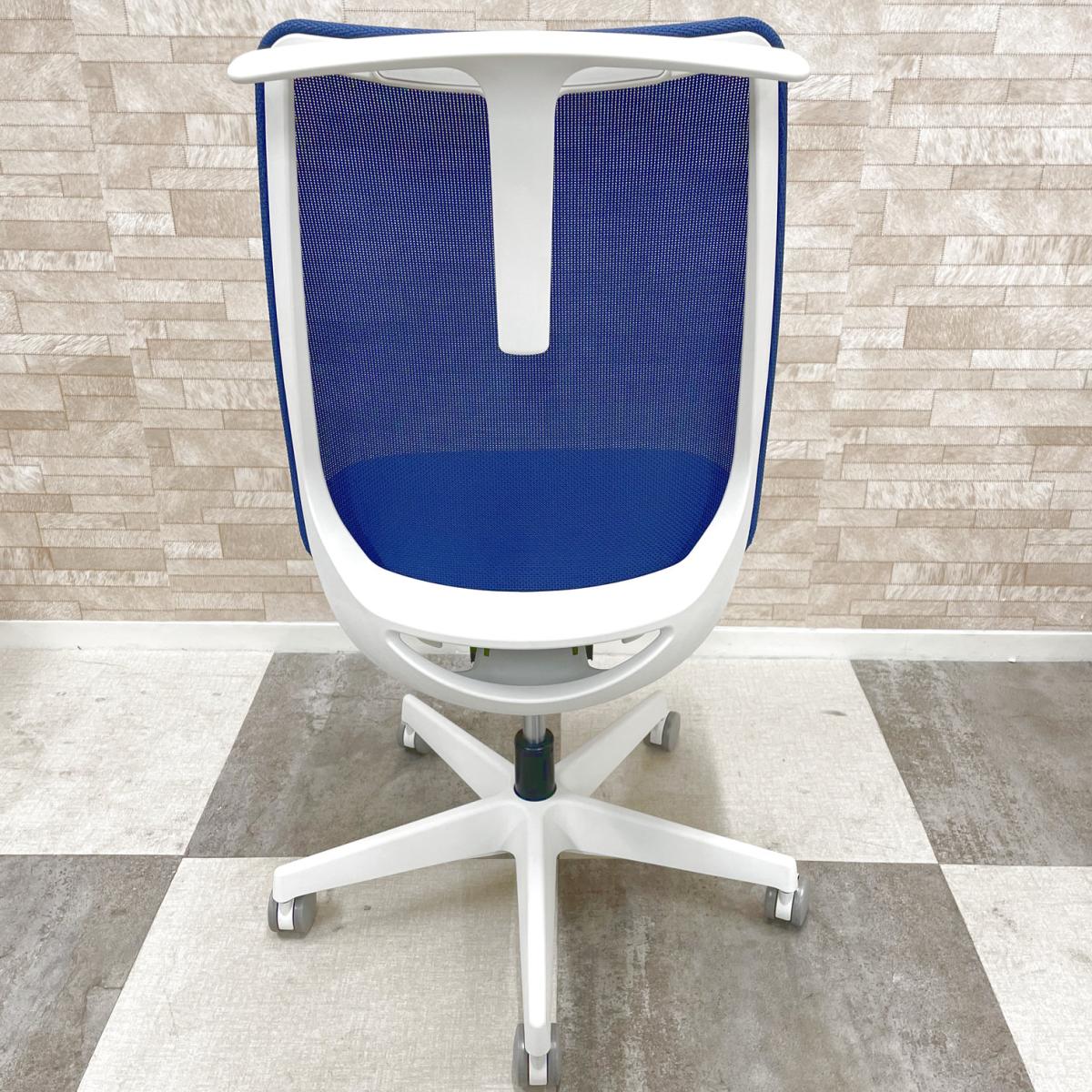 2022年販売開始の最新シリーズロット入荷! オカムラ製 ポータム potam ブルー ホワイトフレーム 背面メッシュ 座面前後調整 肘無しハイバックチェア オフィスバスターズ在庫がある店舗一覧