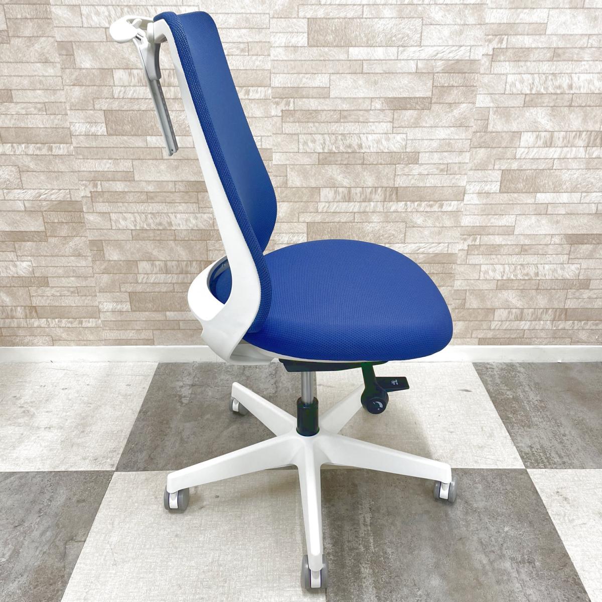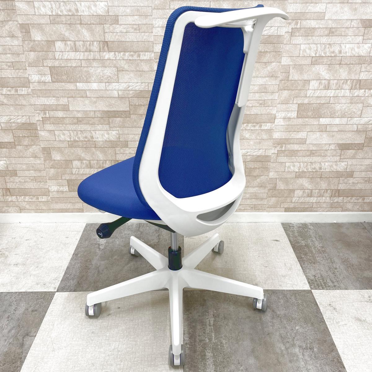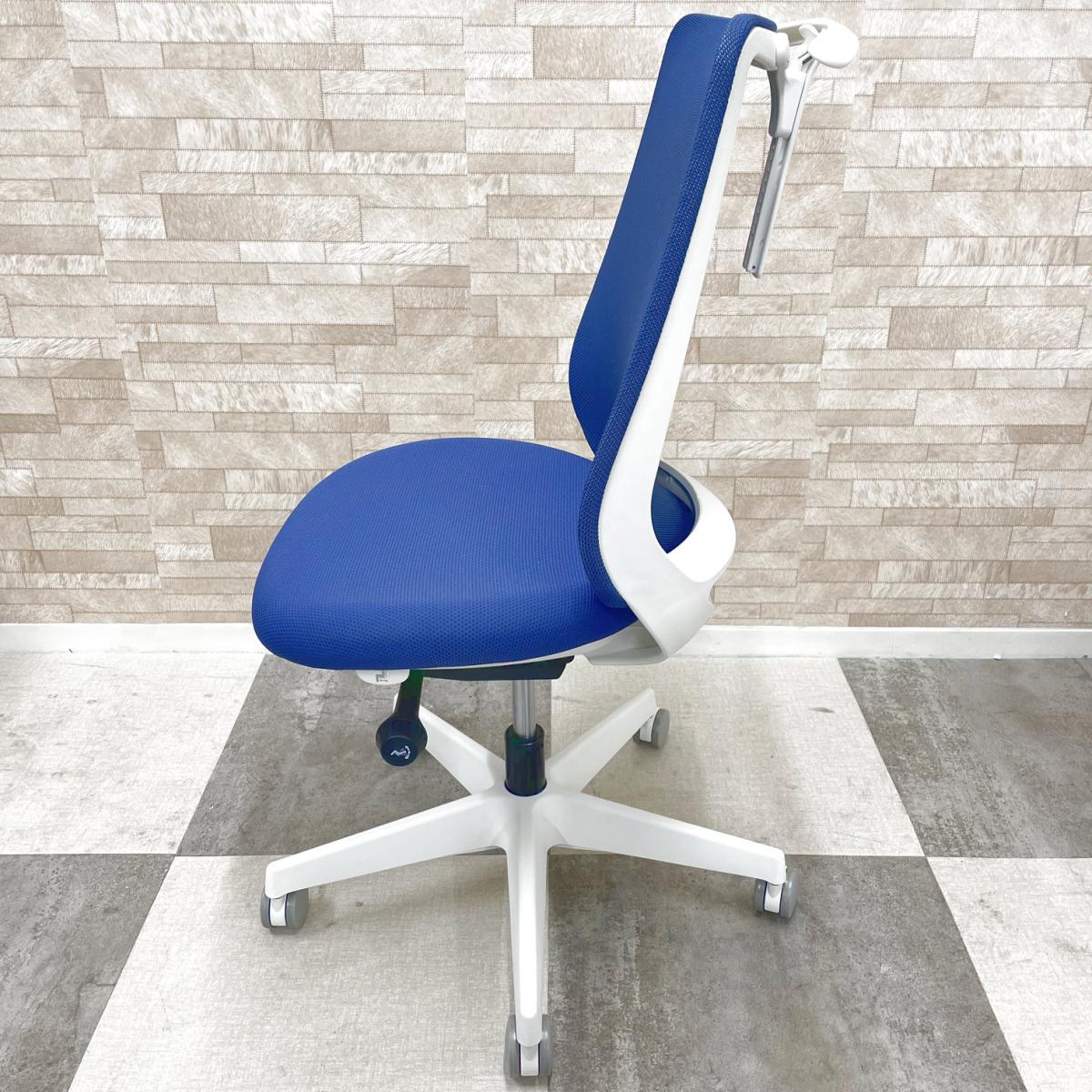 2022年販売開始の最新シリーズロット入荷! オカムラ製 ポータム potam ブルー ホワイトフレーム 背面メッシュ 座面前後調整 肘無しハイバックチェア オフィスバスターズ在庫がある店舗一覧
