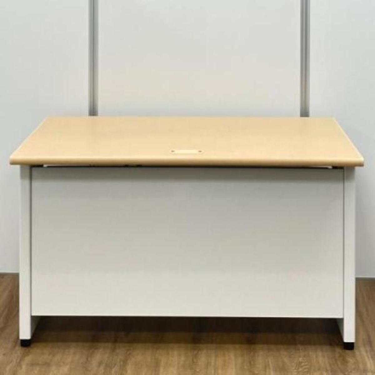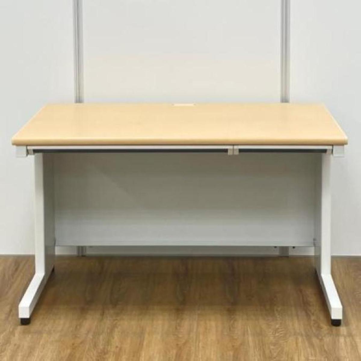 【ベーシックな使いやすさ・ローコストの引き出し付きデスク!】■プラス (PLUS) 製 フラットラインシリーズ 平デスク W1200mm 引き出し付(日焼け有) ■本体:ホワイト 天板:木目ナチュラル(メープル調) 【弊社使用欄:A01040783/A01035962】