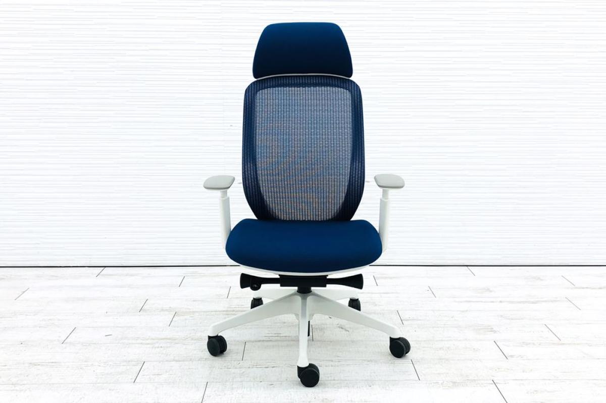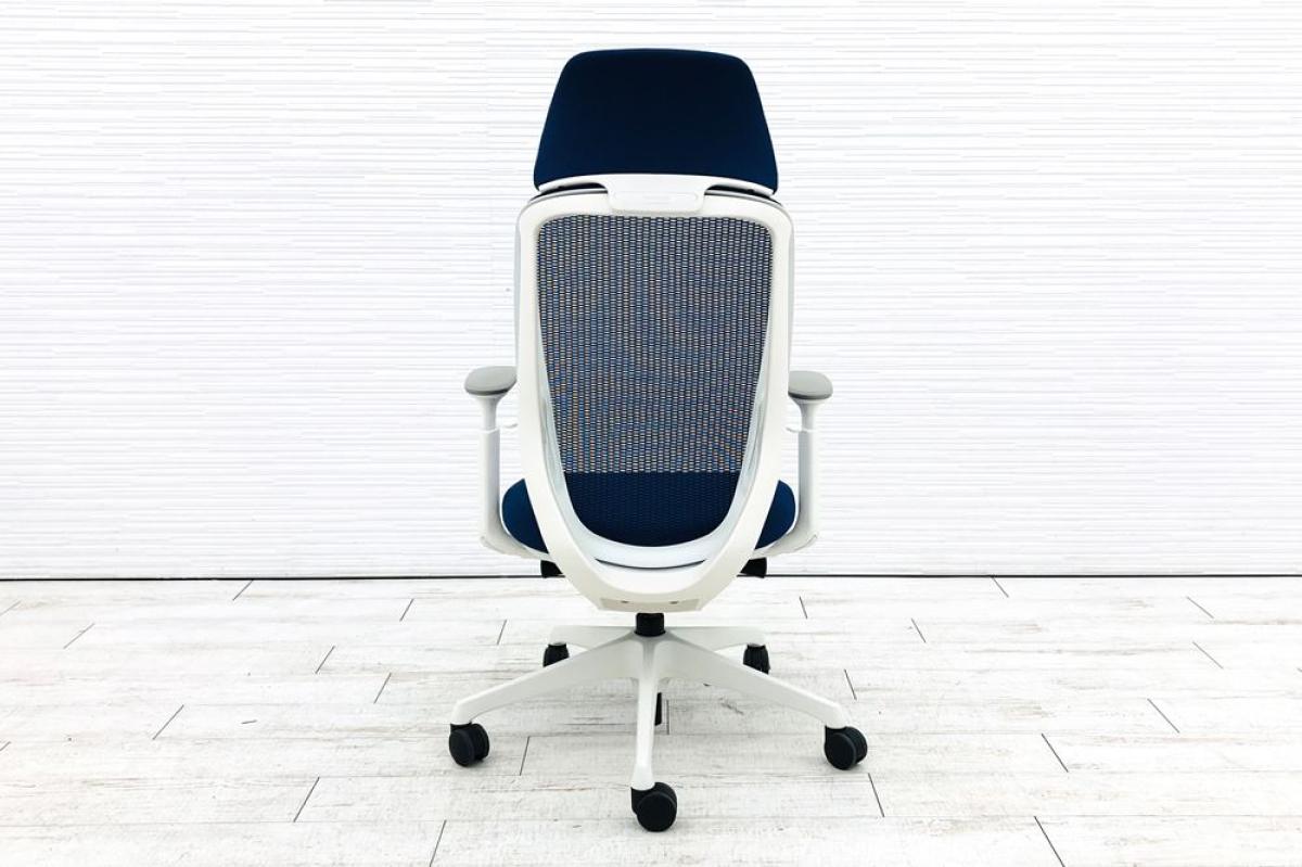 【新品ヘッドレスト交換済み】オカムラ/シルフィー/ブルー/可動肘