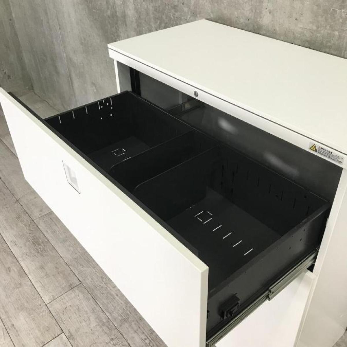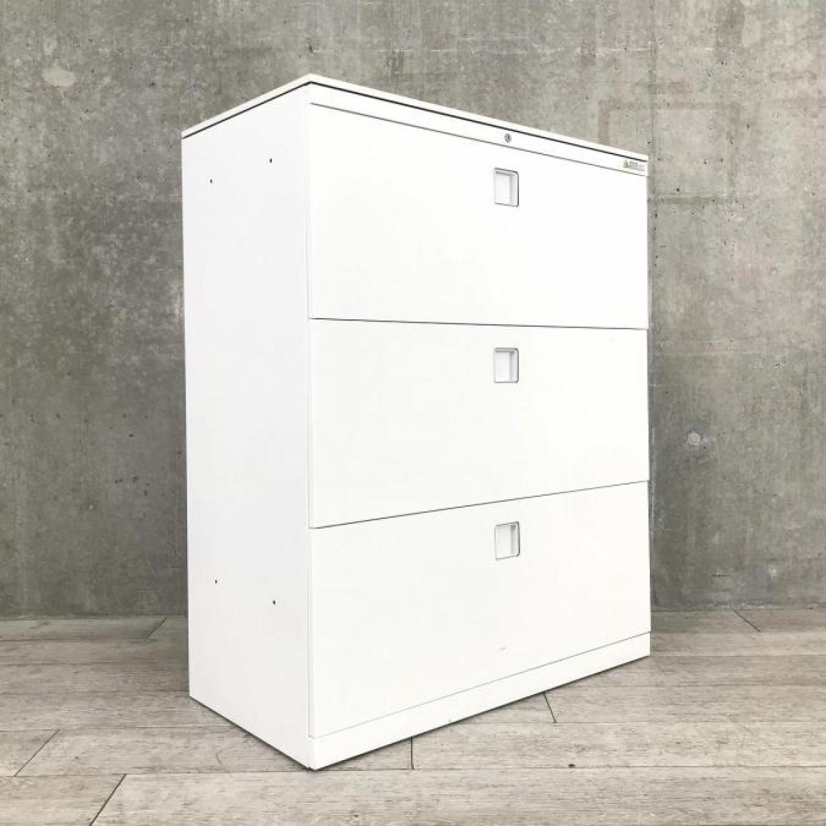 ■オカムラ(okamura)製 レクトラインシリーズ 3段ラテラル ローキャビネット ■天板・ベース付 ■シリンダー錠 ■ホワイト ■収納力抜群【弊社使用欄:A01037187】【SN】