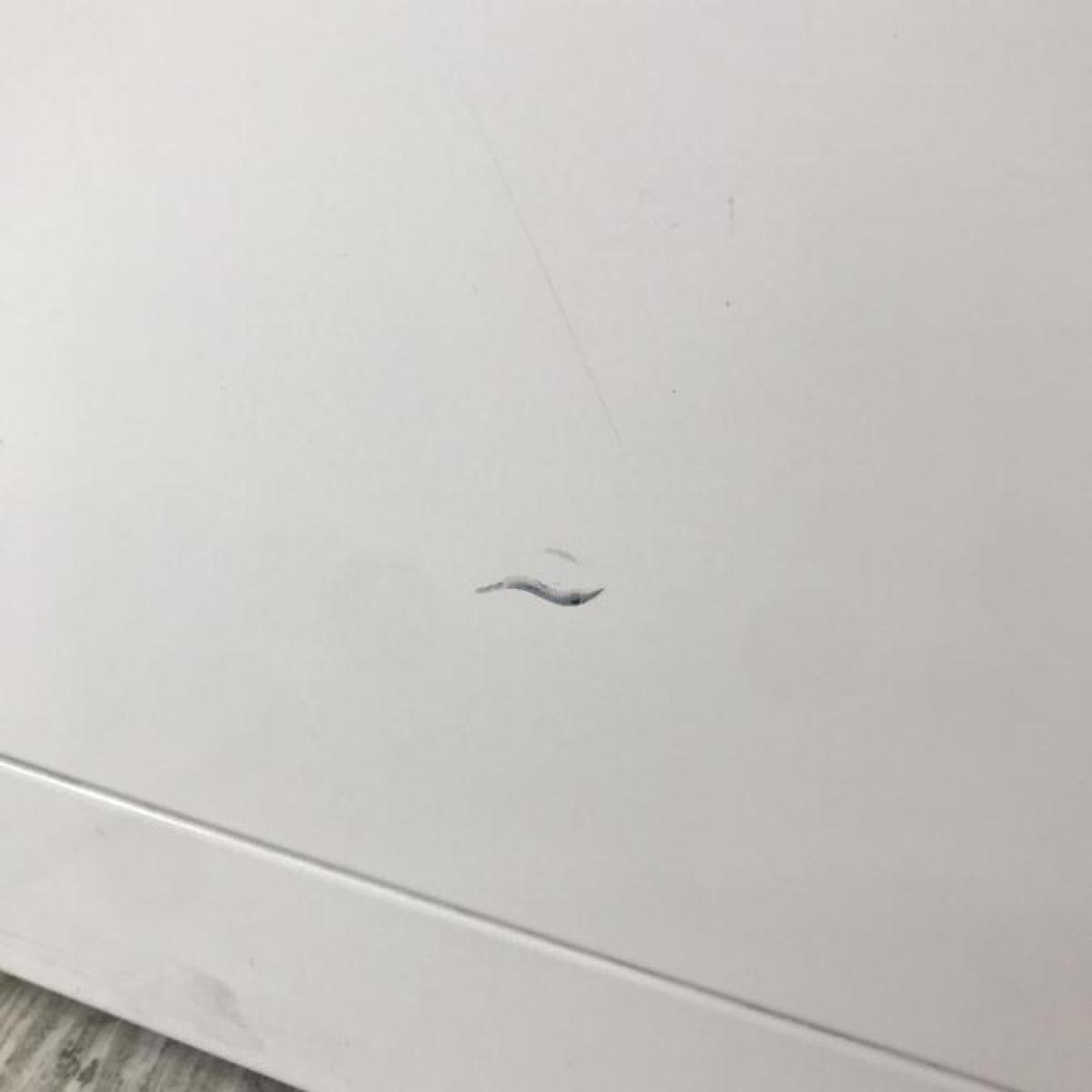 - 目立つ箇所あり傷・凹みが多数、深い傷・凹みが一部ある。(例、天板、正面、背部、サイド部分にある。)