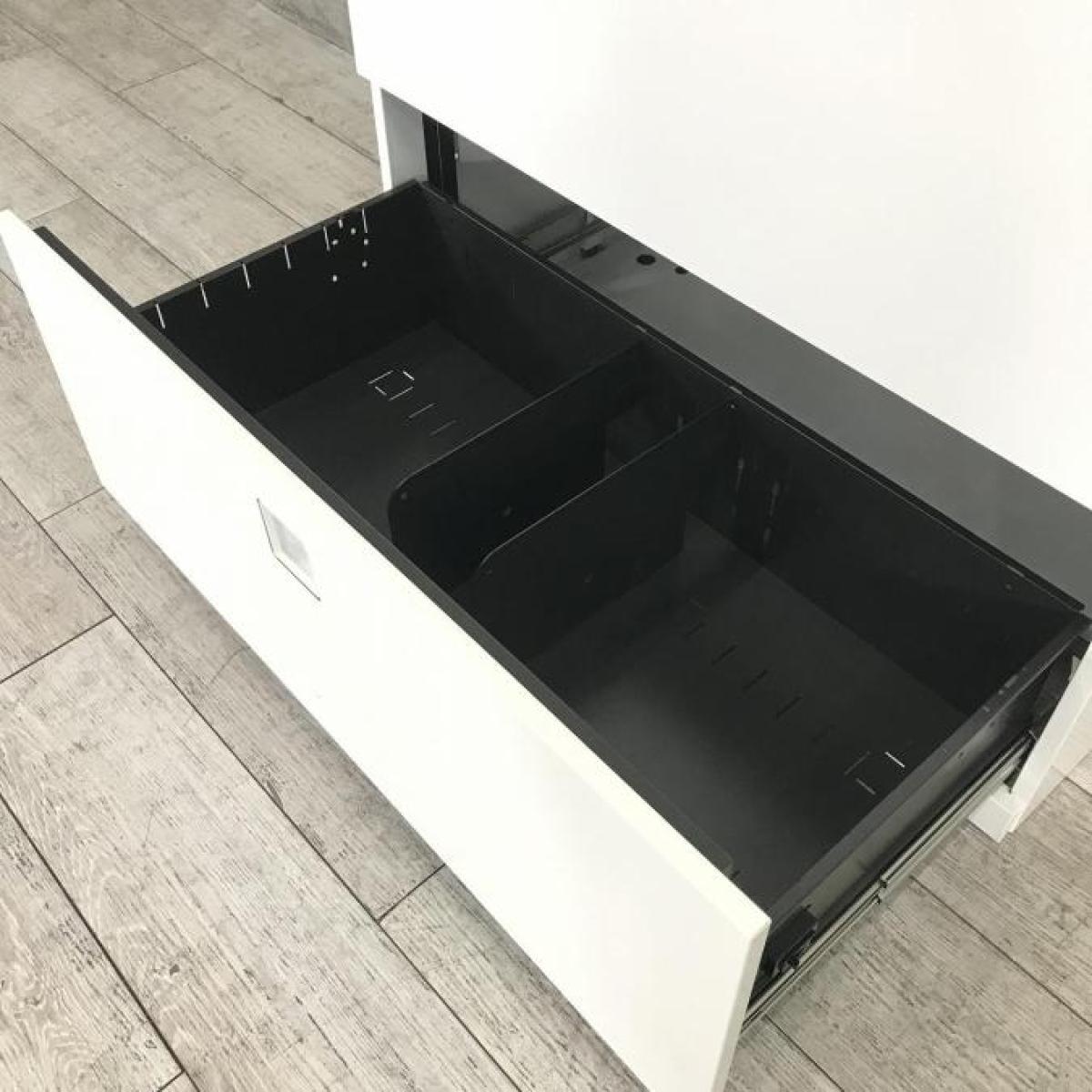 【オフィスの必需品!大容量の三段キャビネット!】■オカムラ(okamura)製 レクトラインシリーズ 3段ラテラル ローキャビネット ■ベース付 ■シリンダー錠 ■ホワイト 【弊社使用欄:A01037187】