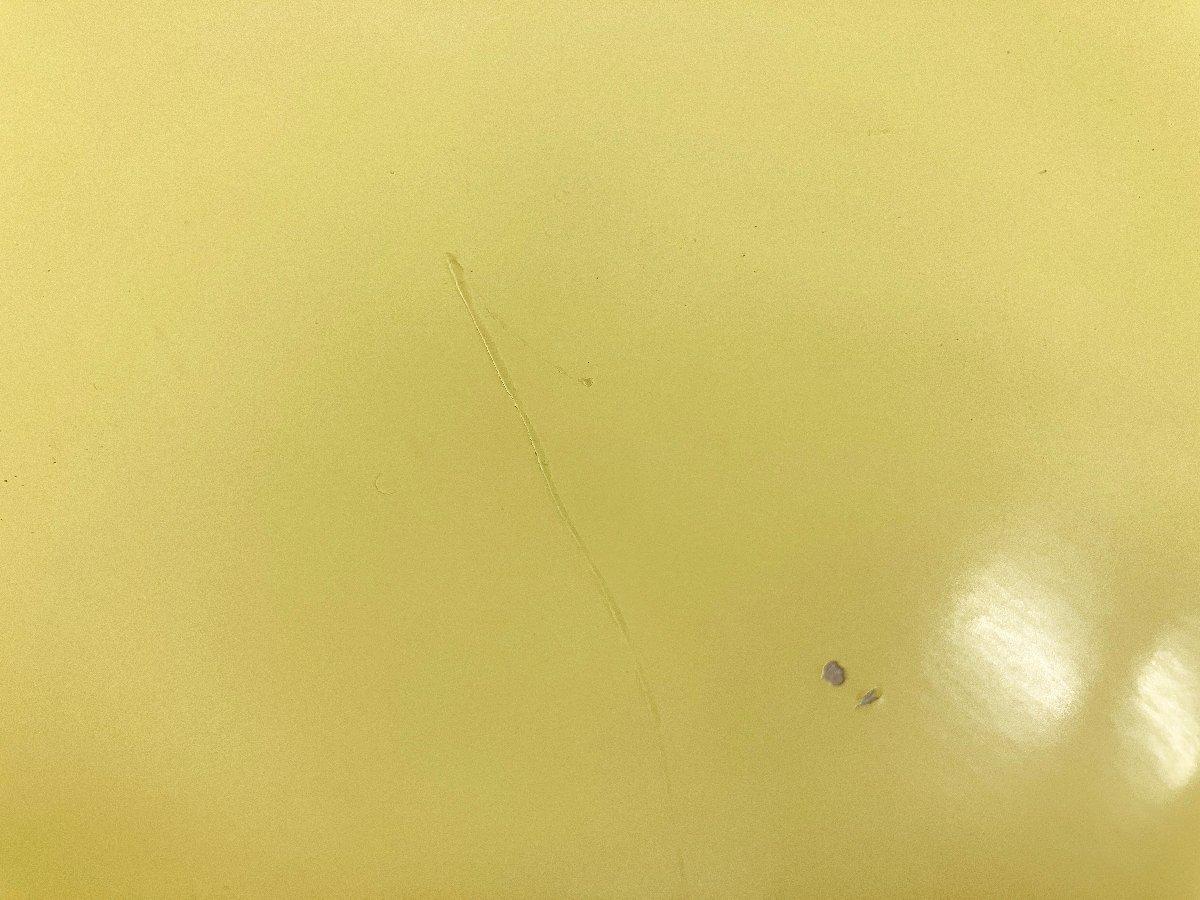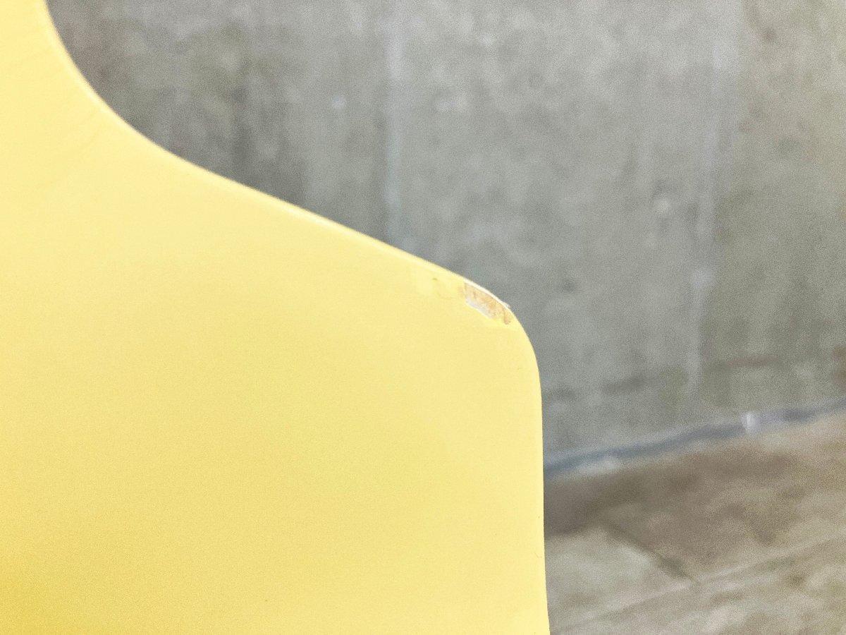 - かなり強い濃い黄ばみ・変色が商品全体にある。(例、座面・背もたれ、脚部等にある。)