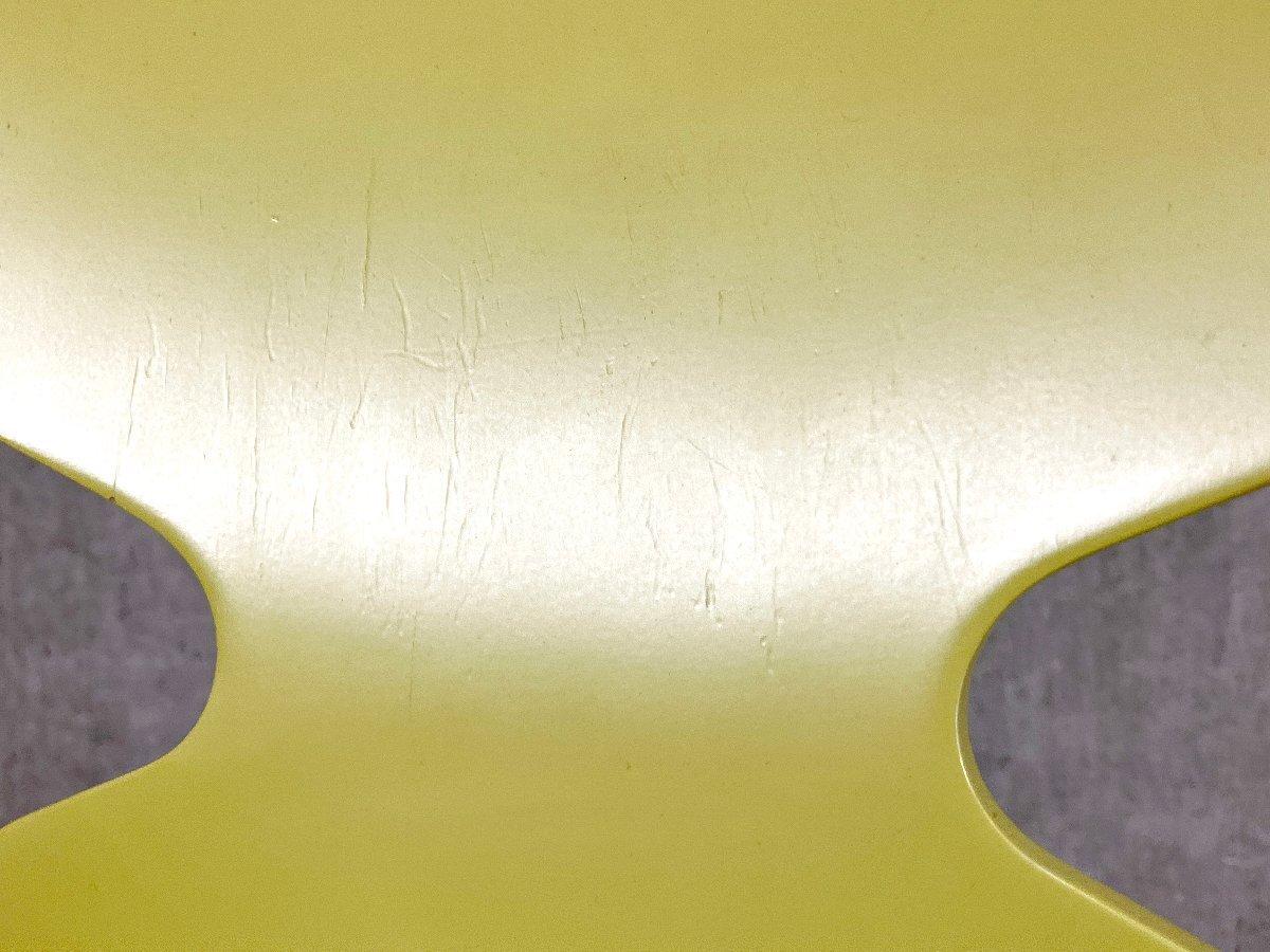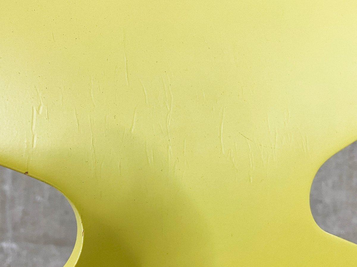 - かなり強い濃い黄ばみ・変色が商品全体にある。(例、座面・背もたれ、脚部等にある。)