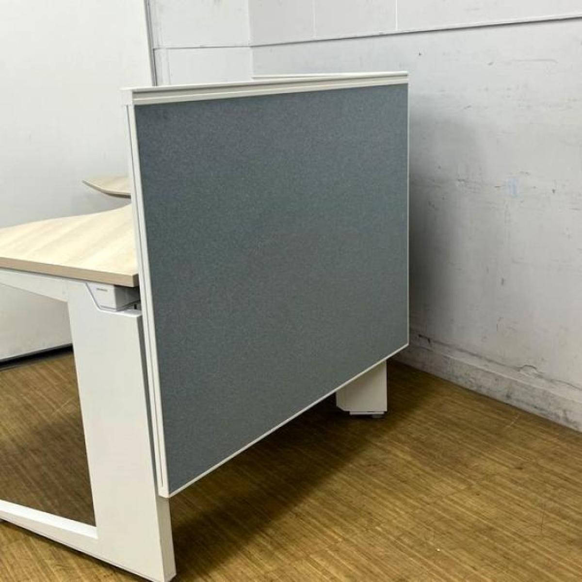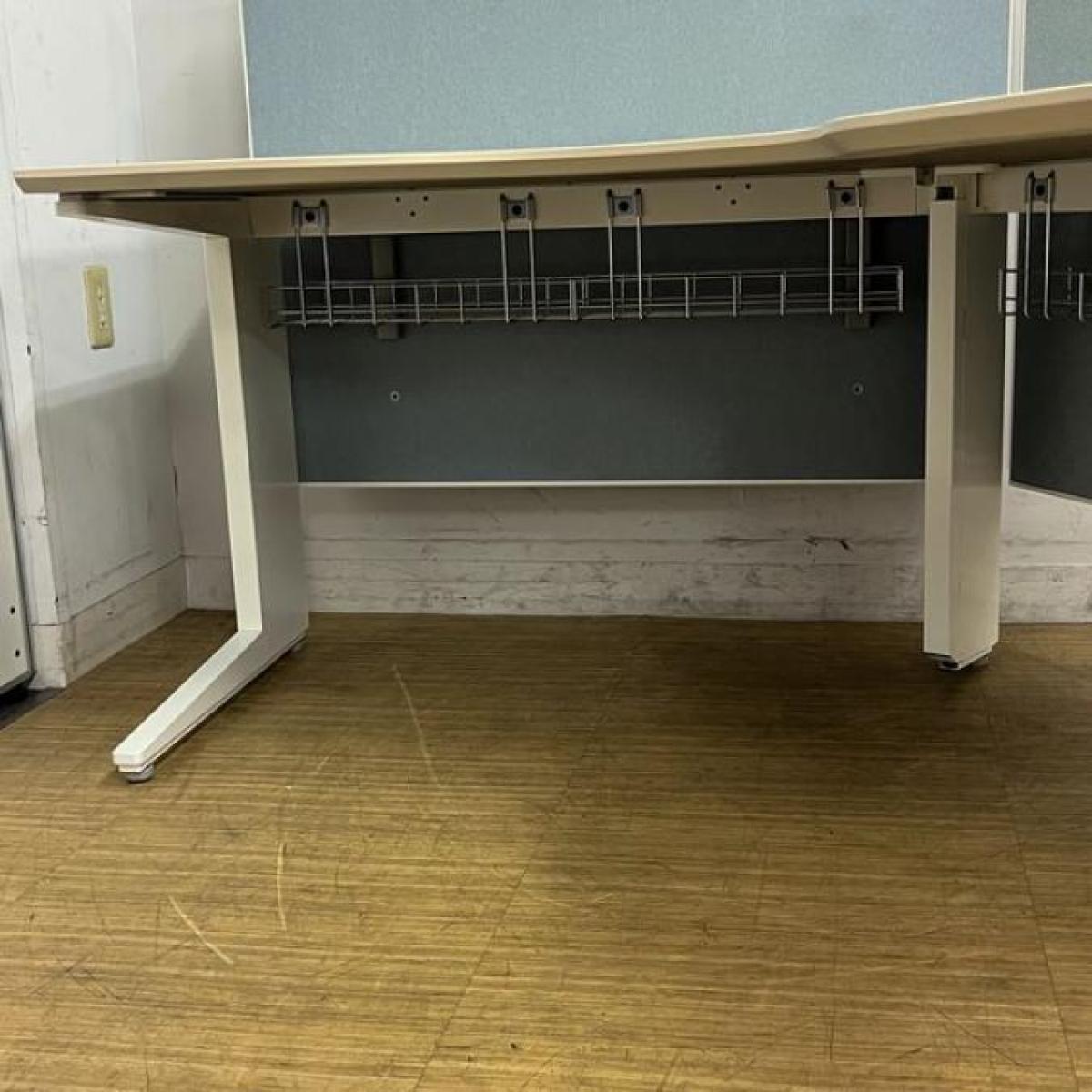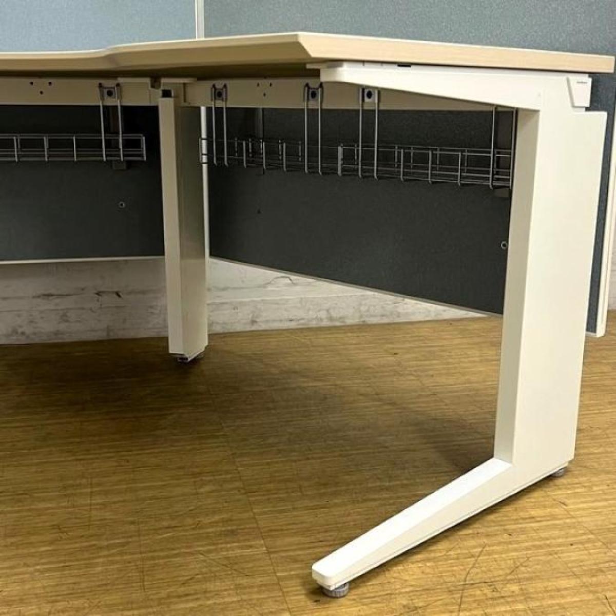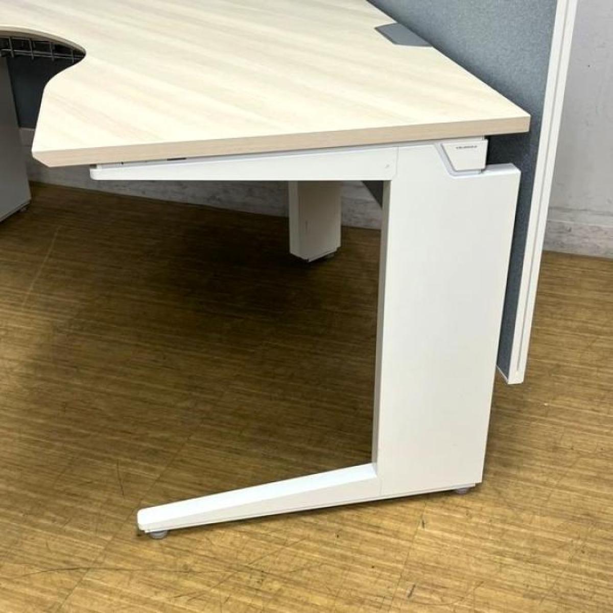 【在庫入替セール】【定価40万越え】オカムラ プロユニット 120°ブーメラン型デスク 天板プライズウッドライト×脚ホワイト バックパネル付き【ABW】- 名古屋千種店