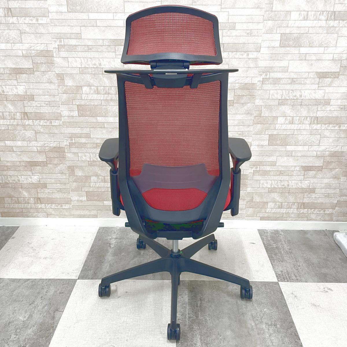 【二重フレーム構造がもたらすしなやかで美しい背もたれ機能!簡易操作で自分に合った姿勢をサポート!】■コクヨ(KOKUYO)製 デュオラ(Duora) ハイバック 肘付き 背面メッシュ ■可動肘/ランバー付/ヘッドレスト付 ■カーマイン×ブラックシェル