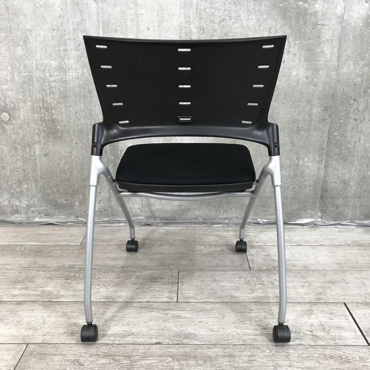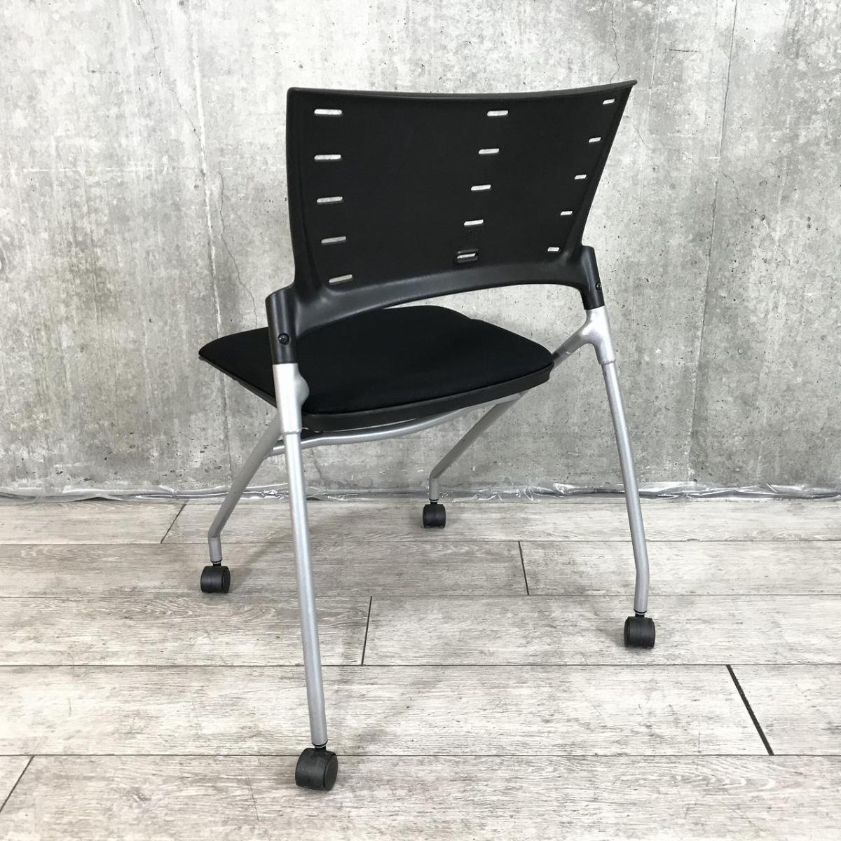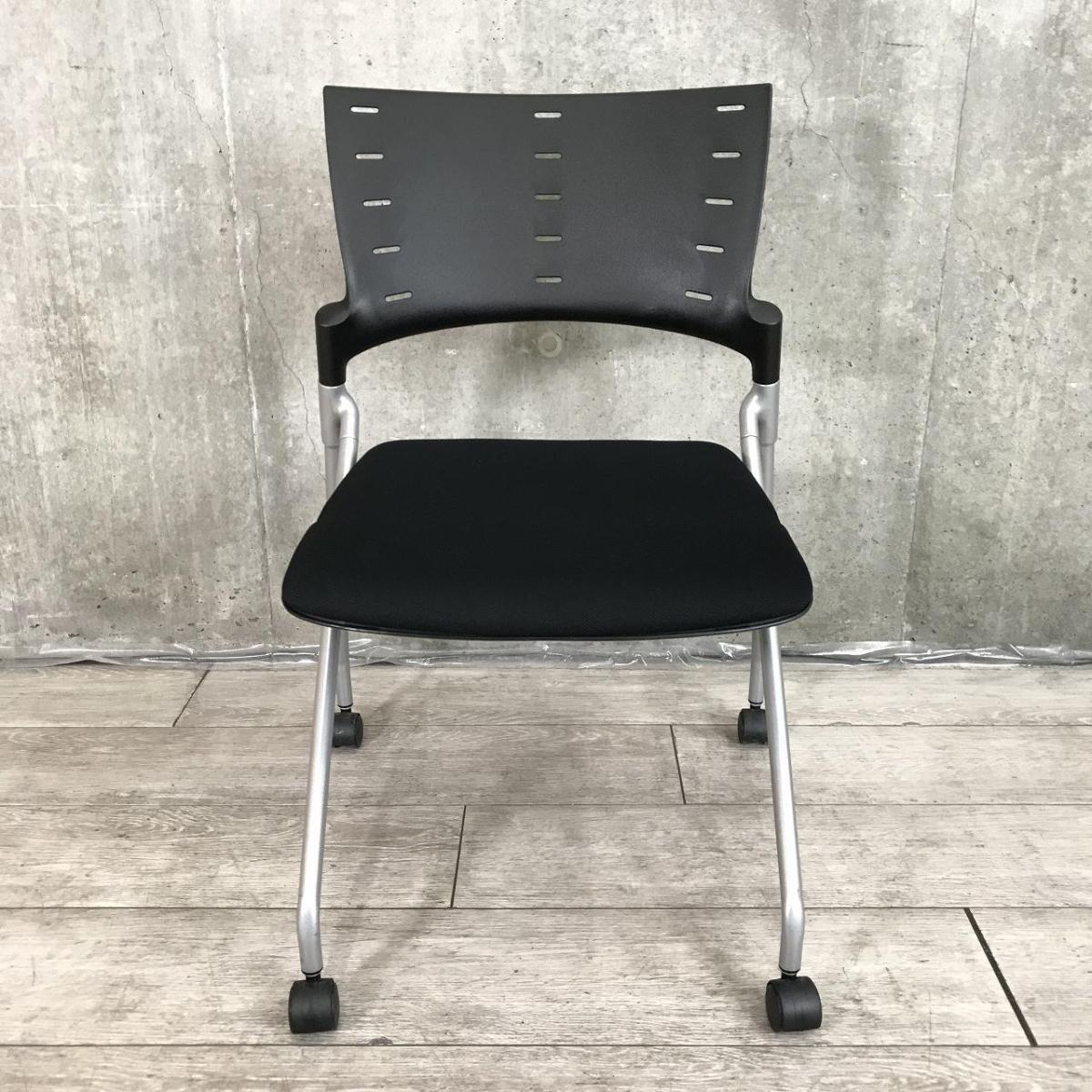 【関西倉庫在庫品】【平行に重ねて省スペース!使い勝手抜群のミーティングチェア!】■イトーキ マノスシリーズ ネスティングチェア 座ブラック 背ホワイト キャスター付【ITOKI Manos】【W】