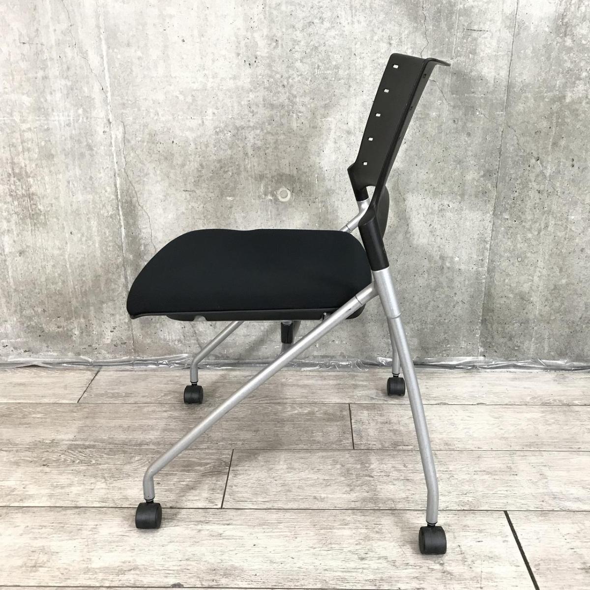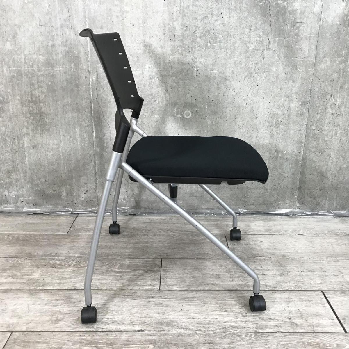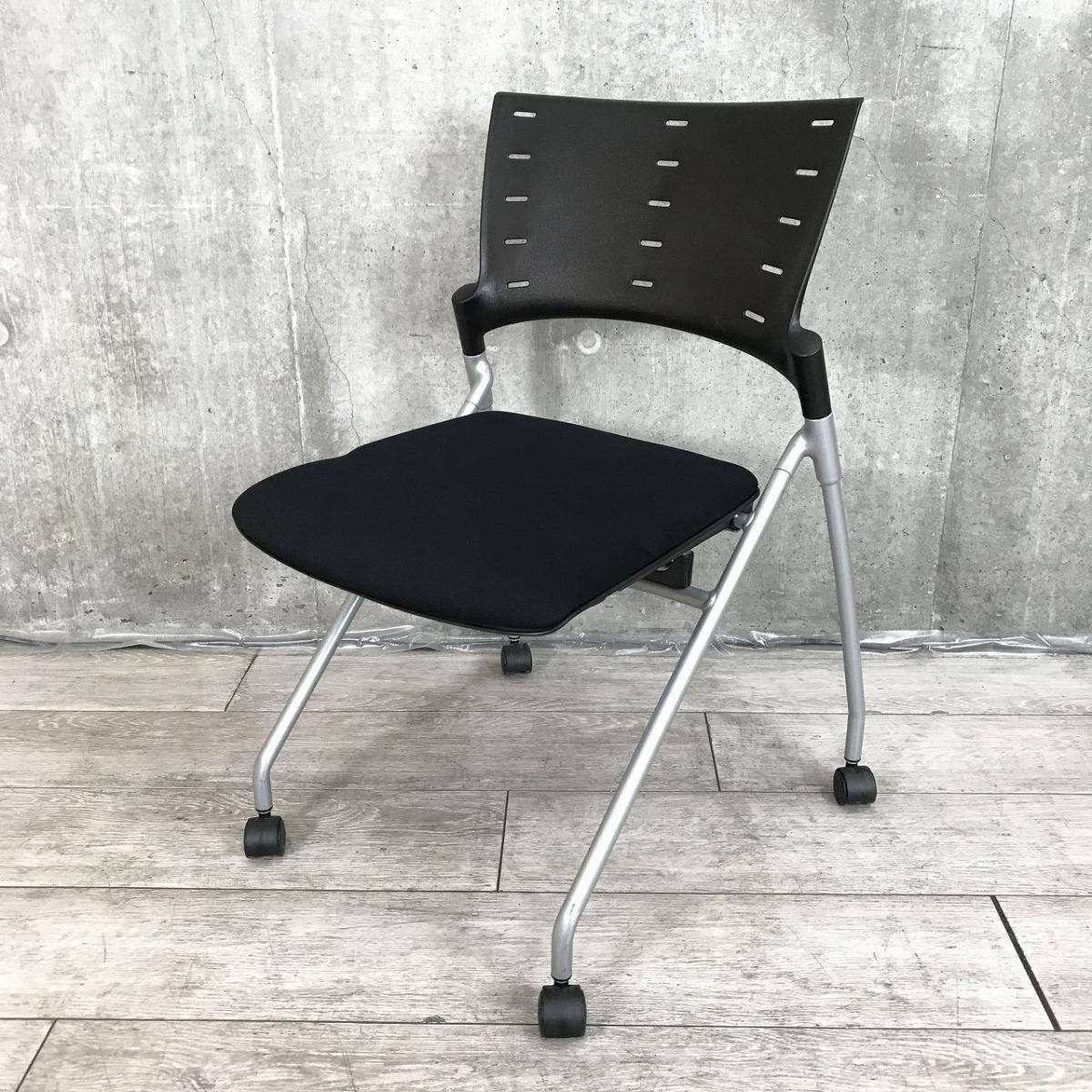 【関西倉庫在庫品】【平行に重ねて省スペース!使い勝手抜群のミーティングチェア!】■イトーキ マノスシリーズ ネスティングチェア 座ブラック 背ホワイト キャスター付【ITOKI Manos】【W】